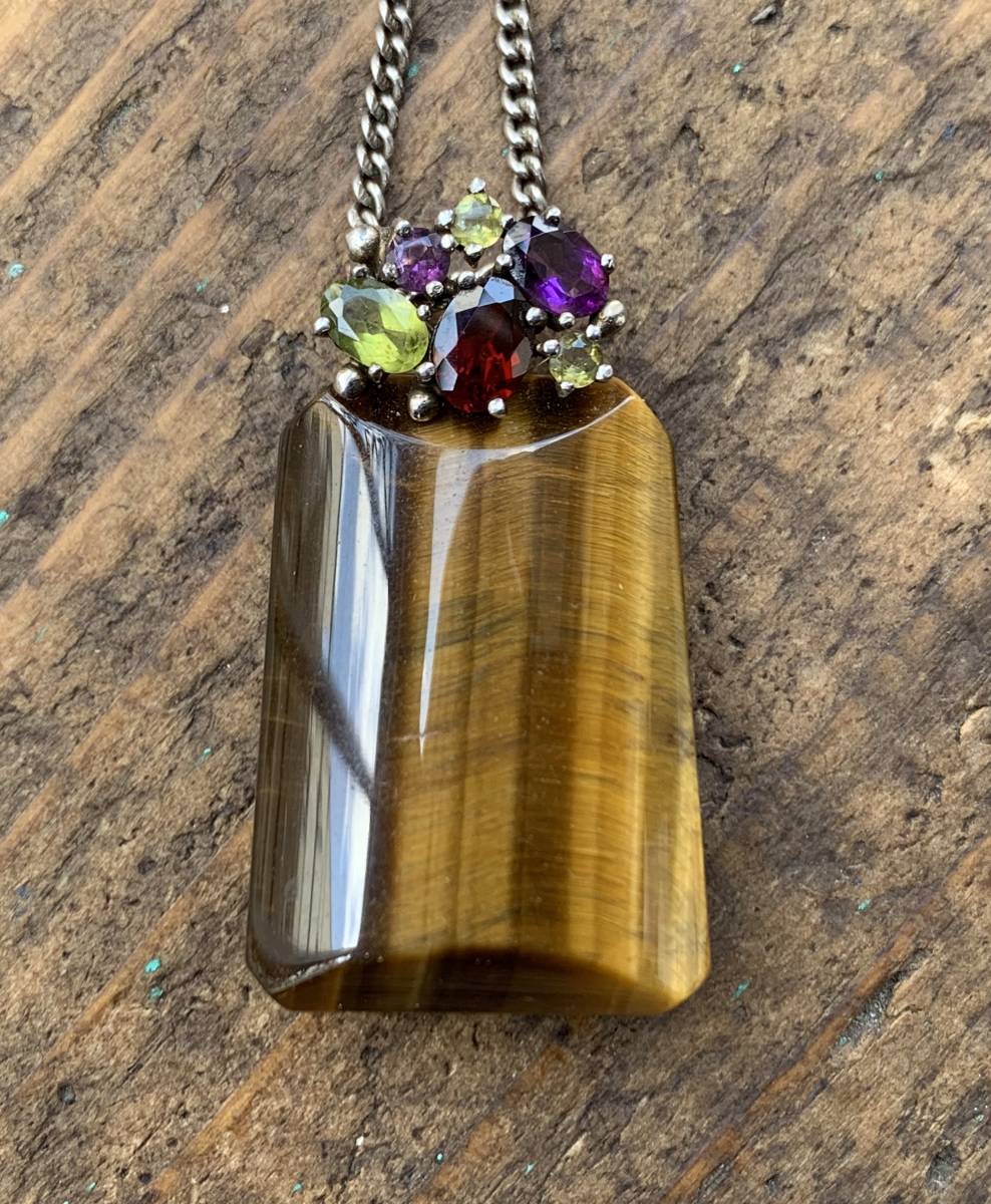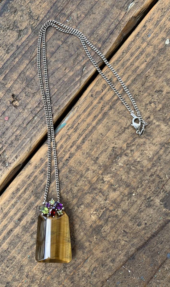 ★タイガーアイ★ペンダント★ネックレス★アクセサリー★シルバー925★ラインストーン★