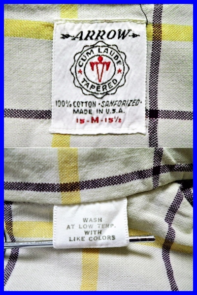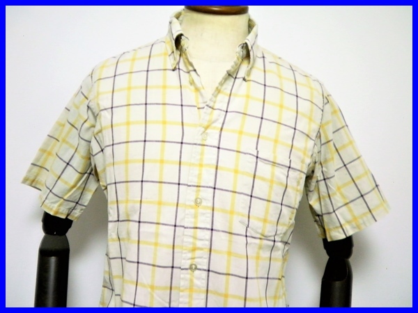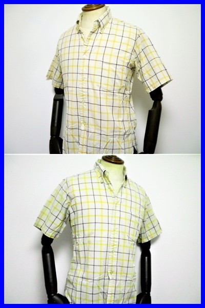 送料無料でお送りいたします(同梱不可)。 他の発送(宅急便など)をご希望の場合は送料を連絡いたしますので、 取引メッセージよりご連絡ください。 カラー:カーキベージュベースのチェック柄 サイズ:15-M-15 1/2(日本サイズでM-L相当) 【実寸】 着丈 69 袖丈 25 肩幅 43 身幅 53 (当方素人採寸による実測のため、多少の誤差があるかと思います。ご容赦下さい。) ■ランク:C ■備考 ※古着シャツとして程よいUSED感で着やすいです。 ※袖に2か所、身頃に2か所、点シミありです(画像あり)。 ※他には特に目立つ汚れやダメージはなく、状態はまずまずです。 ※素材はコットン100%です。 ※生地はやや薄手のコットン地で涼しげ、肌触りよく着心地抜群です。 ※ArrowのUSA製、正規品です。 ※アメカジ定番アイテムですので流行りにとらわれず永くご愛用いただけます。 ※完璧なお品をお求めの方、また中古品にご理解のない神経質な方におきましては、 恐れ入りますがご入札をお控え頂けますようお願い申し上げます。 -------------------------------------------- N:新品 S:未使用or新品同様のお品 A:コンディション良好な美品 B:使用感の有るまずまず良好なお品 C:全体的に使用感の有るお品 D:状態が悪く強い使用感の有るお品 J:ジャンク品or難有り品 1850年代創業のアメリカアパレルブランドの老舗シャツメーカー。 当時(1960年代頃)まではシャツのトップメーカーとして多くのシャツを製造、 古着市場でもよく目にするブランドです。 | |