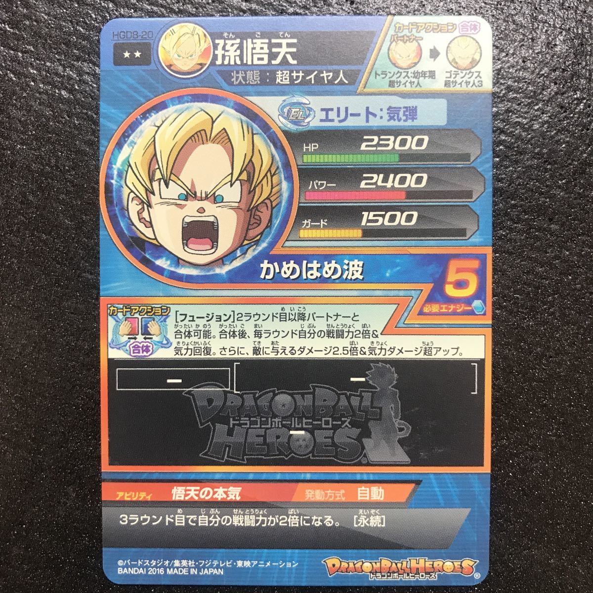 HGD8弾レア/ 孫悟天(超サイヤ人)/ HGD8-20/ 技:かめはめ波/ ドラゴンボールヒーローズ/ レアリティ:☆☆/ 2016 BANDAI