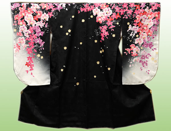 ☆★新品★☆刺繍入☆小振袖(二尺袖着物)【黒系】☆315☆K