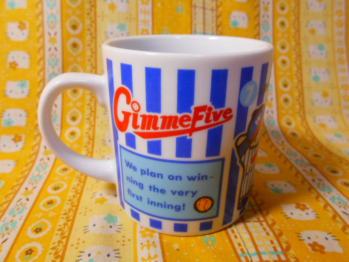 ♪ギミーファイブユーズドGimme Fiveサンリオ陶器製マグカップコップ難あり1989