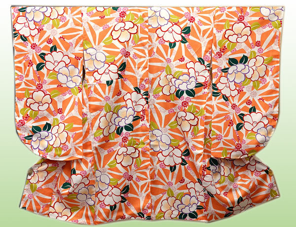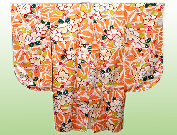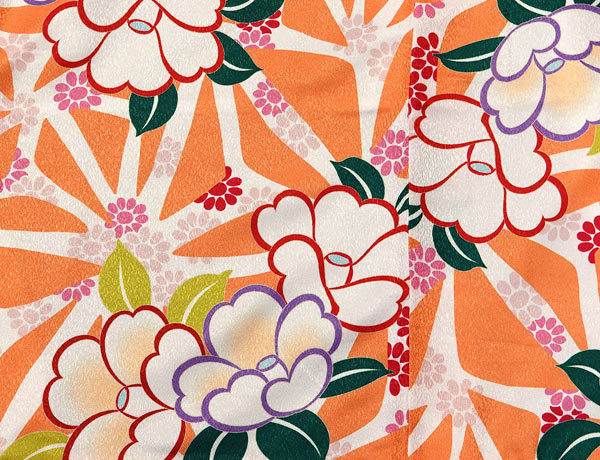 ☆★新品★☆小振袖(二尺袖着物)☆白・オレンジ系☆【NSYA-3】