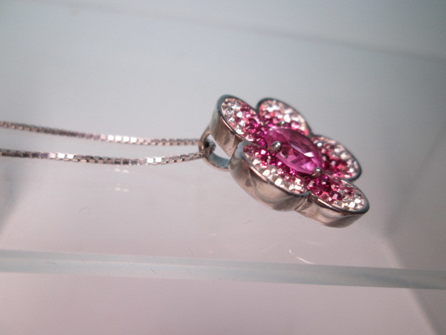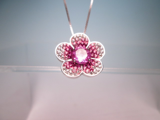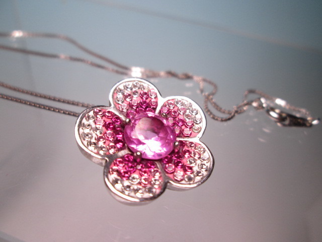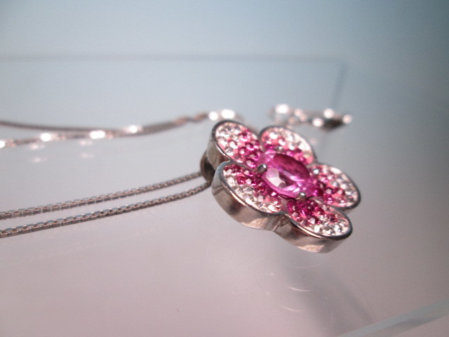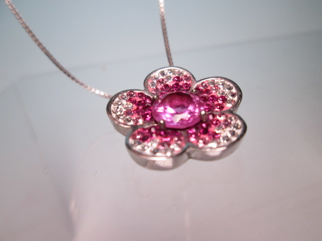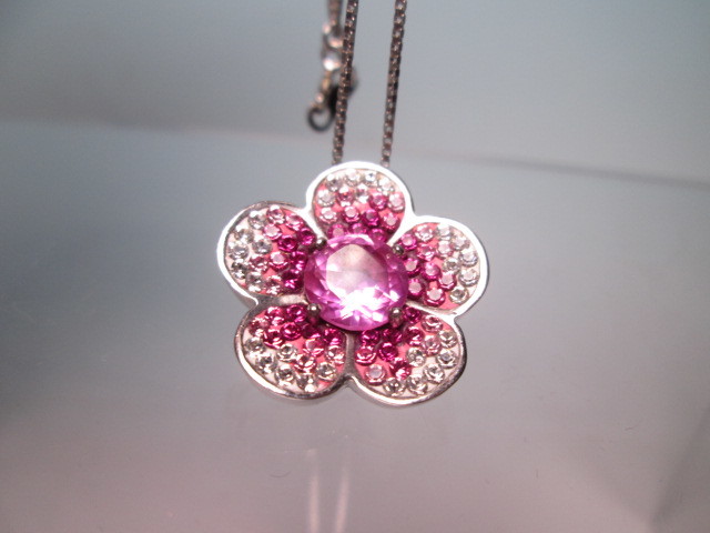 ☆SILVER とても美しい花のラインストーンペンダント&ネックレス 9,04g