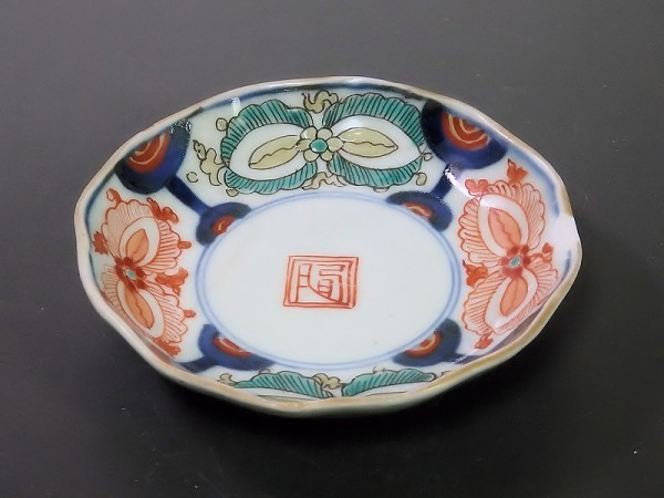 【金継材料】 260 古伊万里 色絵 花の図 天塩皿