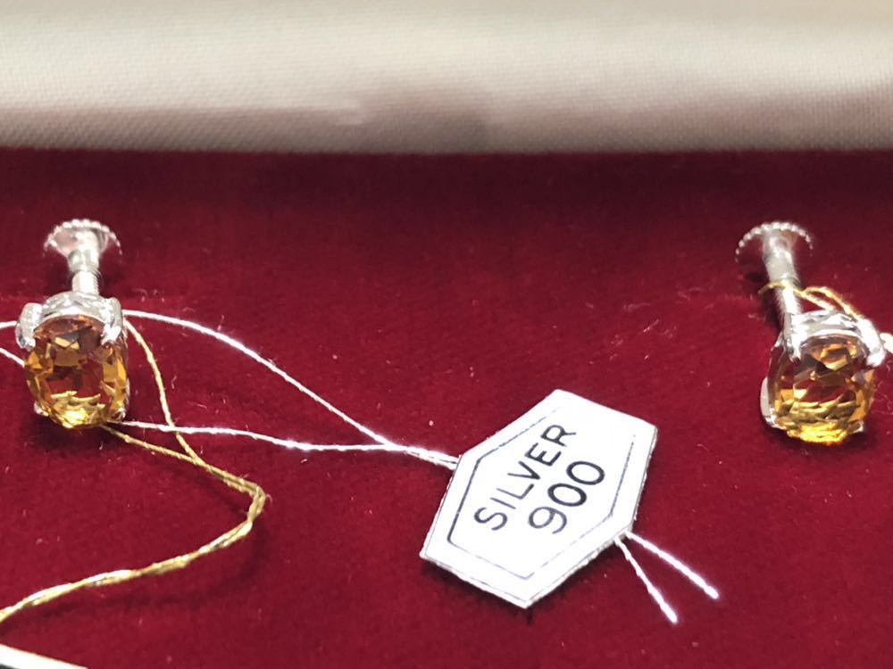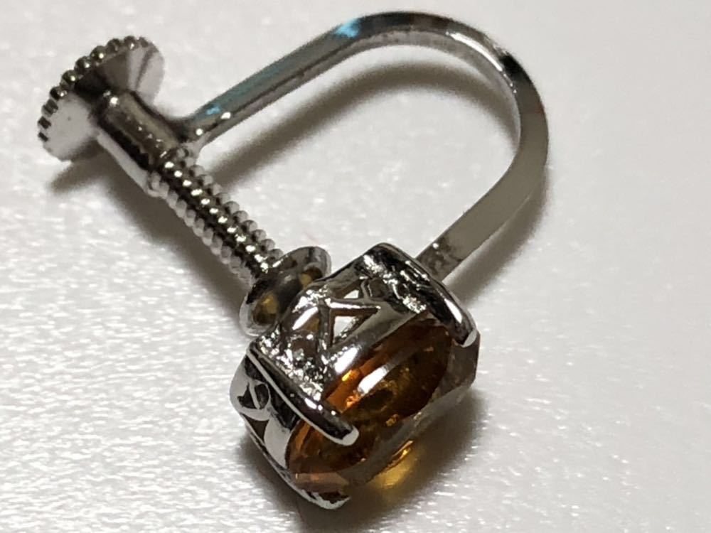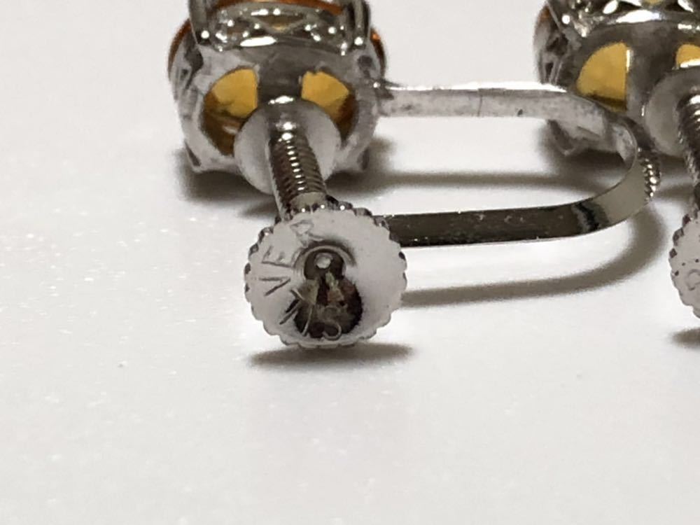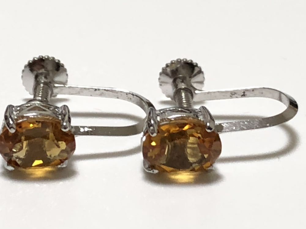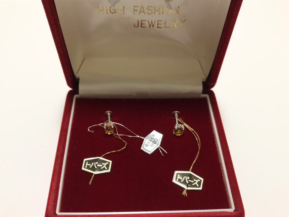 東京製品エリートのトパーズを使用した、オーバルブリリアントカットのイヤリングです。金属面には、 SILVERの刻印があります。未使用品ですが、金属面に若干のメッキ剥げがあります。ケース付属です。
