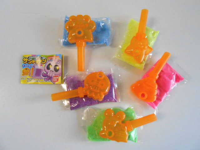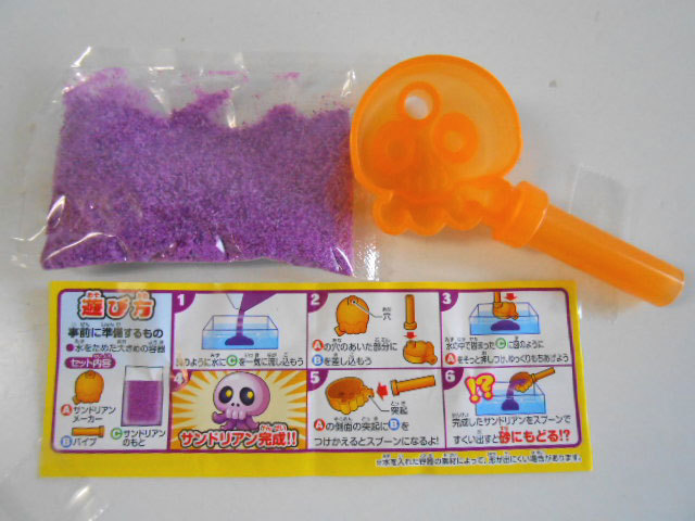 1.ゲロッサ 2.ヌメドン 3.ヒトディーン 4.トグロガイ 5.ホネクラゲ ◇コロコロコミックとタイアップ! お水で固まり空気でサラサラ! セット内容 サンドリアンサンド1袋 専用ツール(ヌキ型スプーン)1個 |