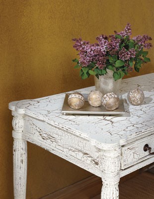 ニスやペンキを塗った古い家具には、日光や温度変化の影響によって、細い糸状のひび割れが見られます。このひび割れは「Crackle For Latex Paint」で簡単に再現することができます。