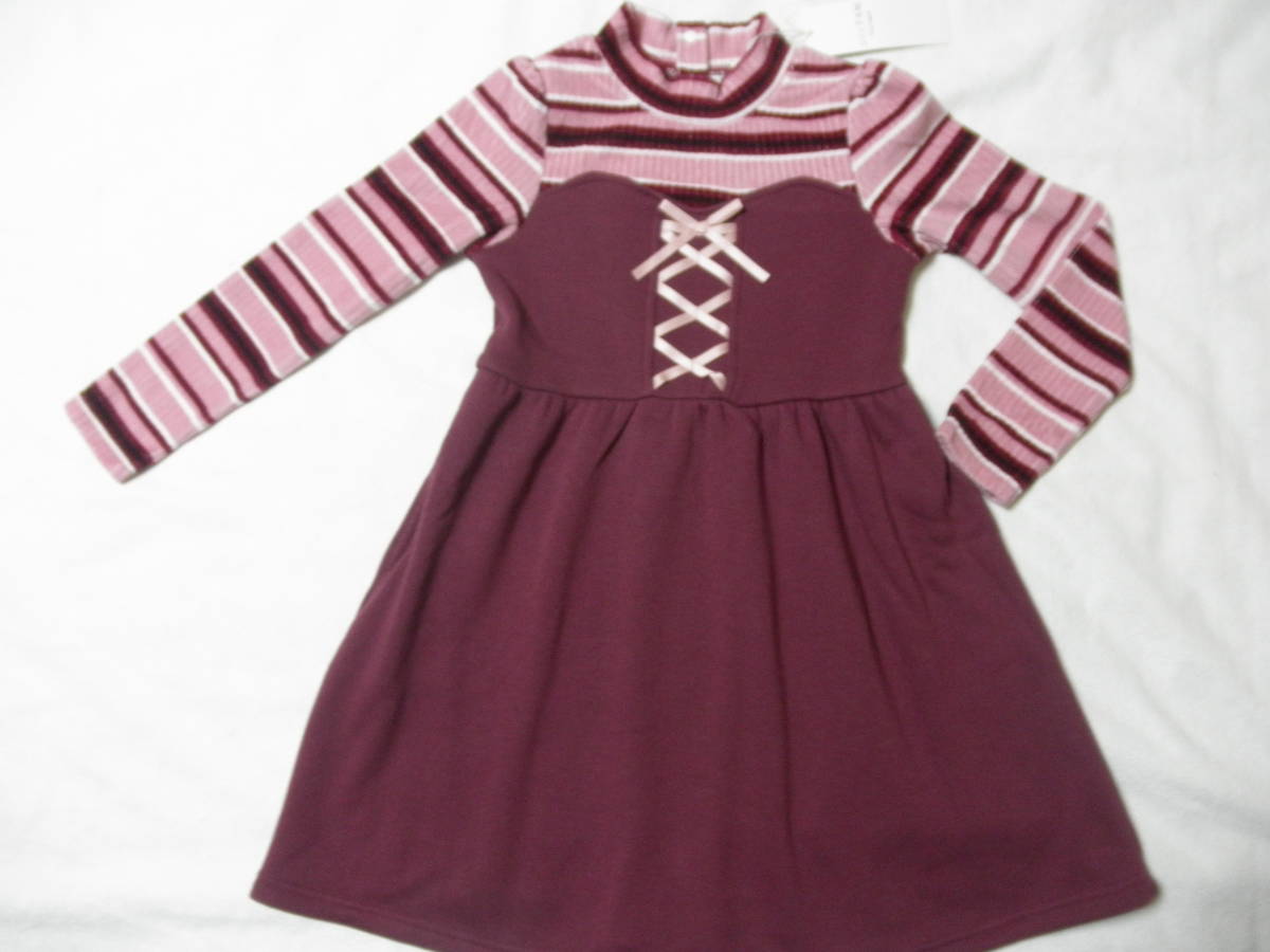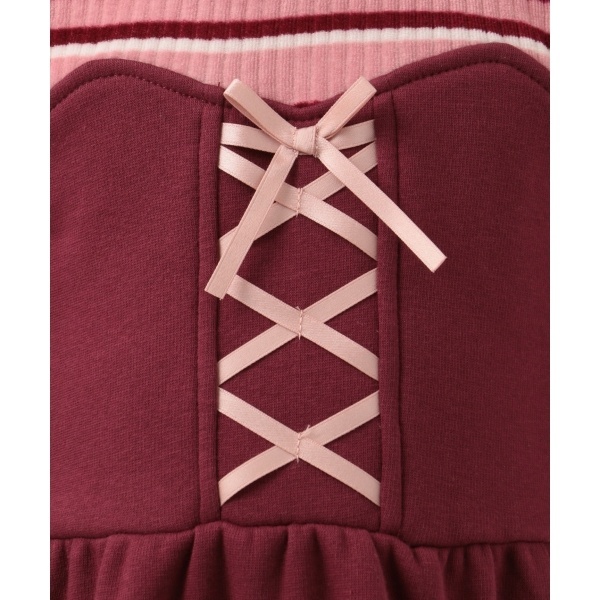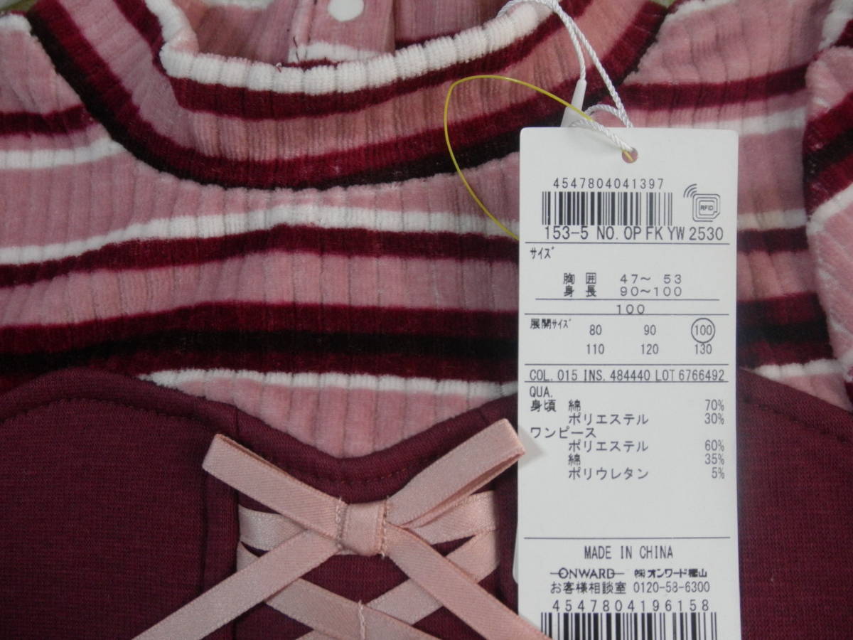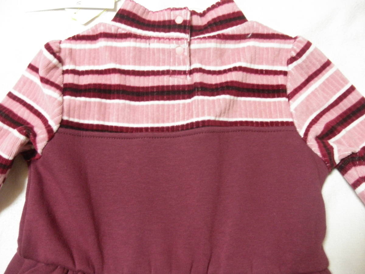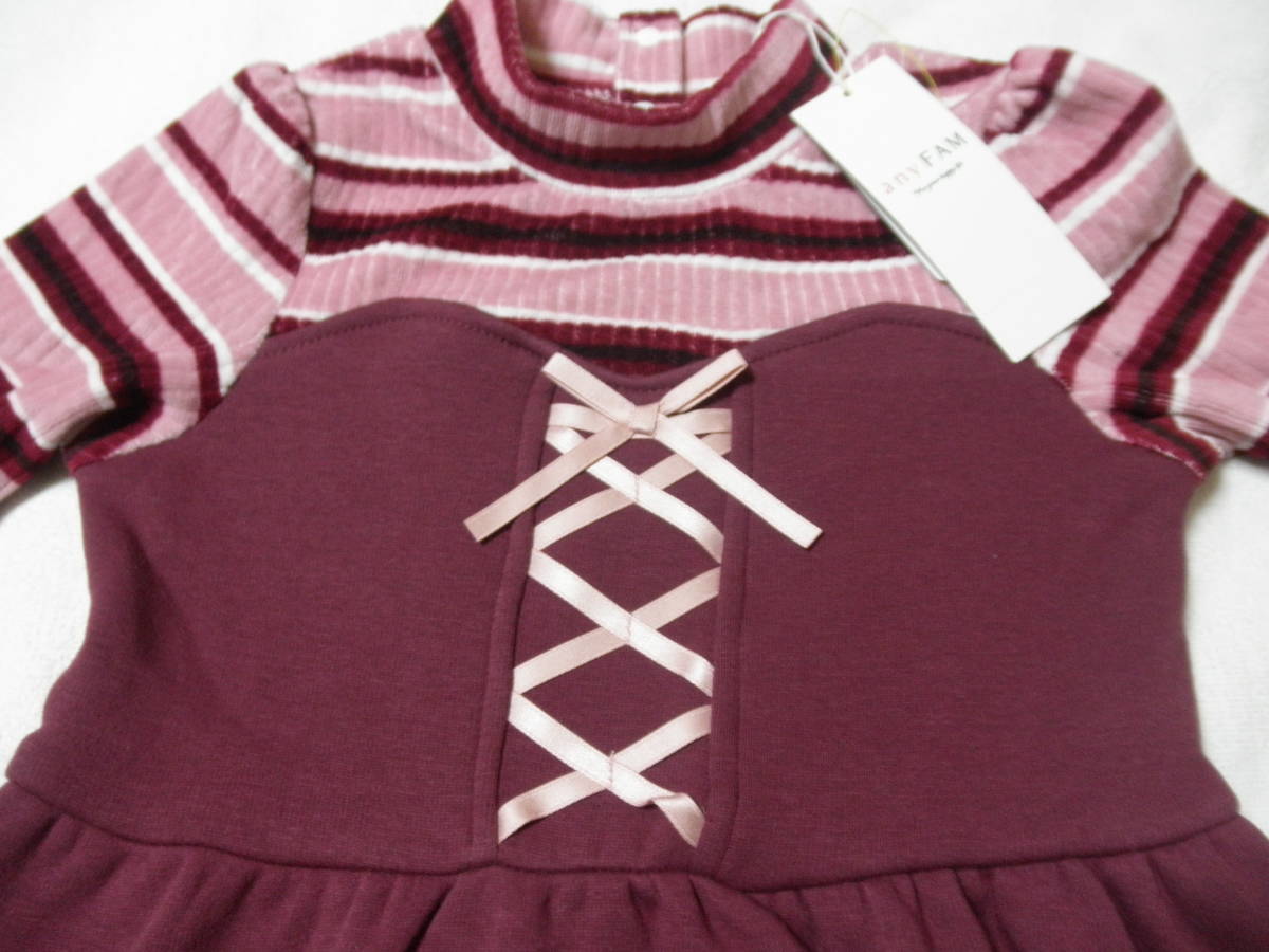 新品 組曲 anyFAM エニィファム 100cm 裏起毛 あったか 長袖 ドッキング ♪ ワンピース 子供用 女の子 ピンク 赤 ワイン エンジ ボーダー