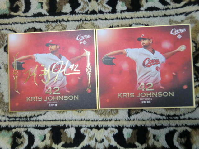 広島東洋カープ 2018 トレーディングmini色紙 K.ジョンソン 金箔サイン レギュラー 2種セット