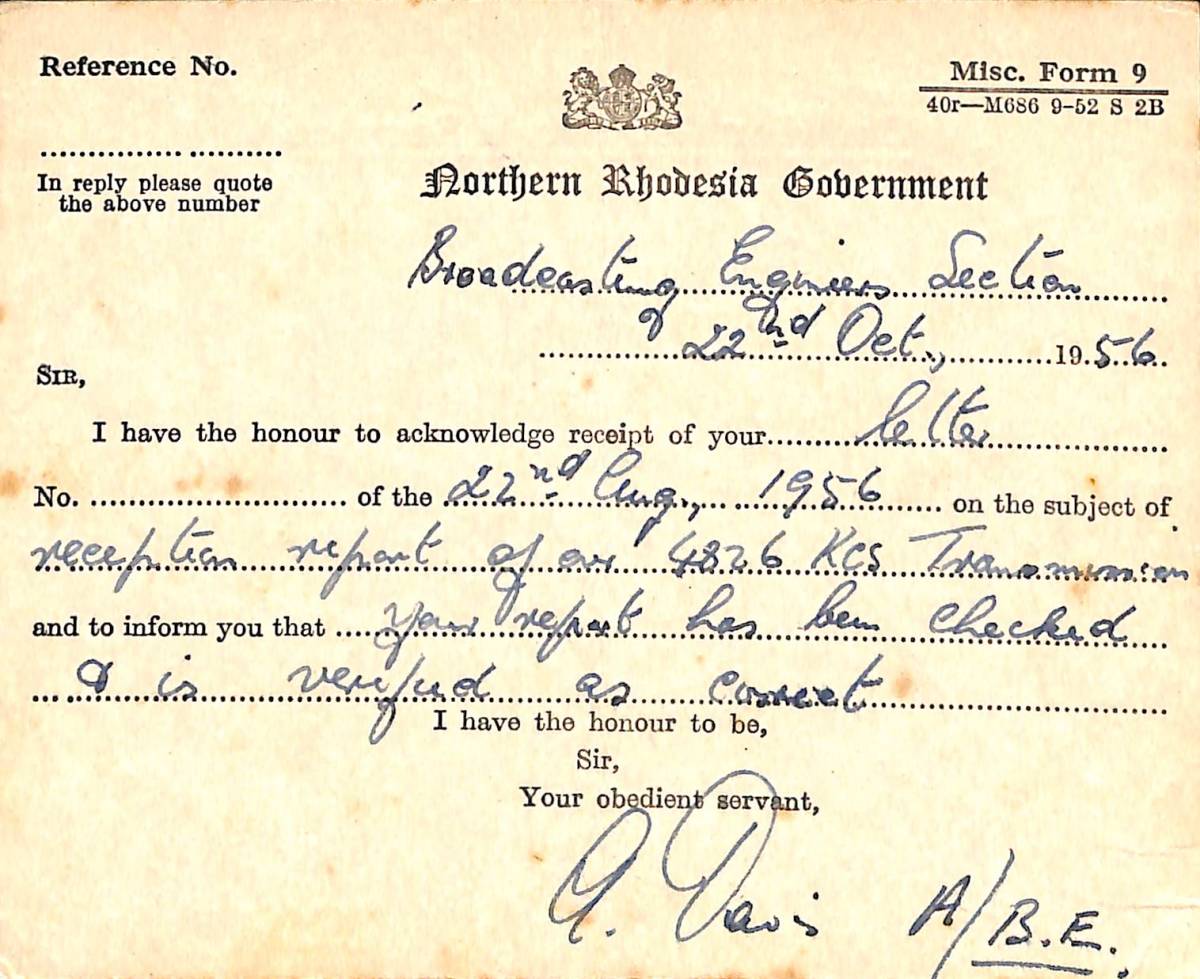 | 【商品名】・・・NRBC(★北ローデシア放送)の★二ツ折ベリカード+封筒付。 【国名・地名】・・・ ザンビア共和国(★旧北ローデシア) ★首都 ルサカ。 【コメント】・・・イギリス保護領から独立前の北ローデシア時代の大変貴重なベリカードです! ■当方、1枚のみ所有していますので即決で落札者様のコレクションになります! 【受信データ】・・・1956年8月22日・SW4826KHZを受信。 【記載事項】・・・受信データのみ記載。 【状態】・・・シワ、汚れ、シミ、焼け、折れ、色あせ等があります。 ■カードの状態は★画像を参考に判断して下さい。 ■当方、1枚のみ所有していますので即決で落札者様のコレクションになります! ■この機会にぜひこのベリカードを貴方のBCLコレクションに加えて下さい! | |