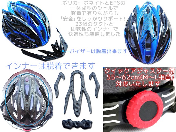自転車用ヘルメット 軽量215g ポリカEPS一体成型 サイクルヘルメット 55~62cm対応【カーボンブラック】送料無料
