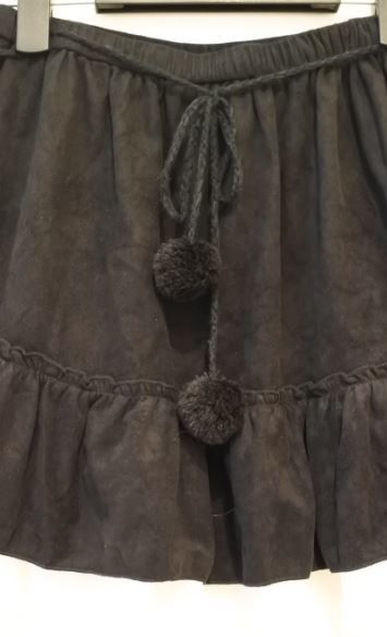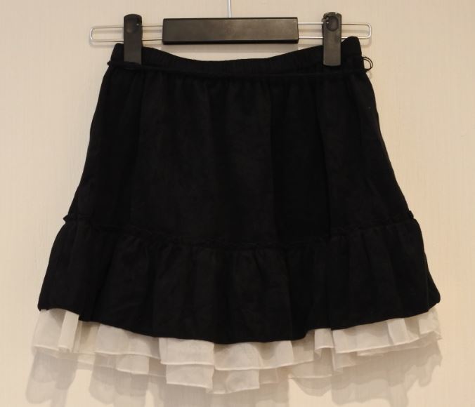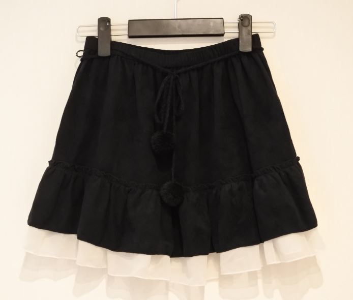 WIN HEART ウインハート スカート ミニ フレア ティアード シフォン Mサイズ スエード調 黒x白 bnbi k2h0221★