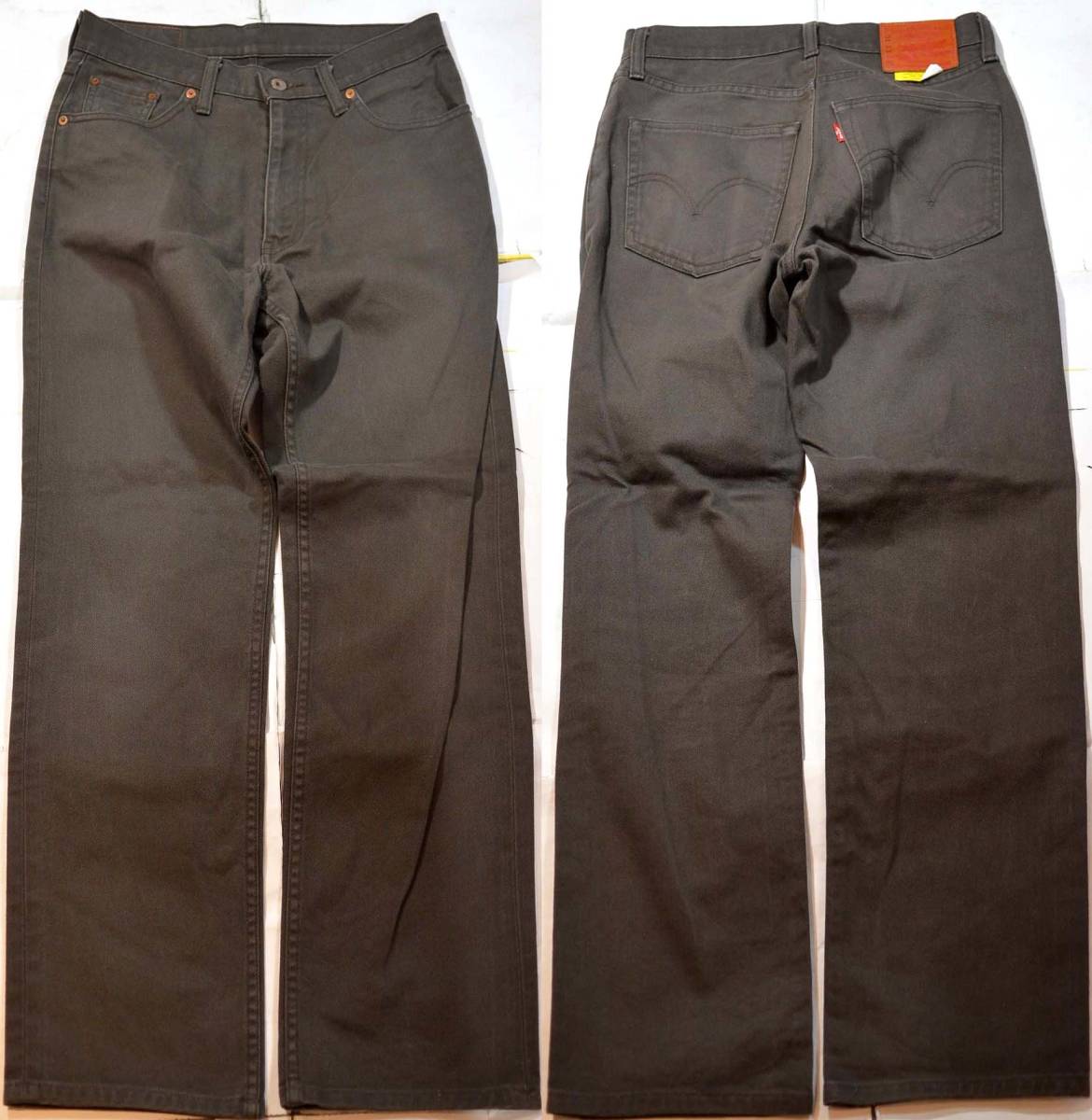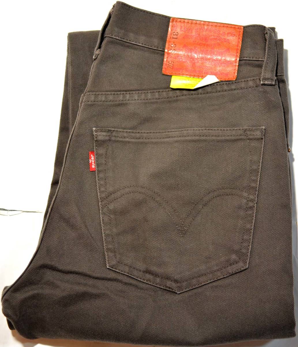 LEVIS502です。裾上げのみ、新品未使用です。保管上の微スレやニオイなどはご承知おきください。 ディテールもこだわっており、牛革の革パッチ、ドーナツボタン、驚きなのが30年代刻印の打ち抜きカッパーリベットが使われています。 『色落ち、特徴など』正式な色はわかりませんが、ダークグリーンでしょうか。穿きやすい良い色だと思います。
