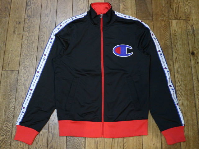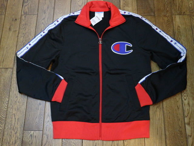 新品 Champion BigC ロゴ トラックジャケット S ブラック レッド チャンピオン ジャージ フルジップ パーカー