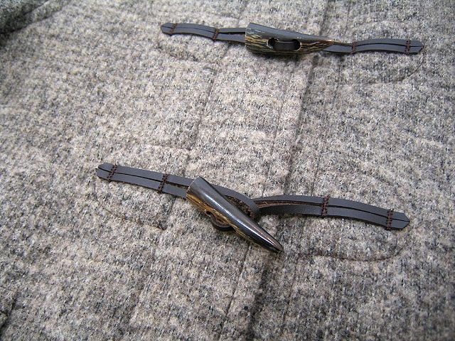 英国製のグローバーオールのニット ダッフルコートです。 「アソシエイテッド・インターナショナル株式会社」の取扱い品です。 グローバーオール といえば、通常は肉厚のウールメルトンですが、 こちらのモデルは「ウールとポリエステルの混紡圧縮ニット」素材で、 メルトンウールに比べ非常に軽量で、程よいストレッチが効いて気軽に羽織れるのが特徴です。 上品で可愛らしいニットダッフルコートです!!! (サイズ)9YEARS 134㎝・肩幅38㎝ 脇下身幅44㎝ 着丈76㎝ 袖丈56㎝ (素材)ポリエステル60% ウール40% (カラー)グレーベージュ系 (商品状態)使用感があり、多少の毛玉があります。 |