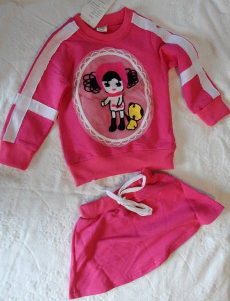 ☆ 素材・・・ コットン100% ☆ カラー・・・トップス:ピンク スカート:ピンク ☆ サイズ・・・120 (実測 トップス:着丈47cm 肩幅28cm 胸囲66cm 袖丈37cm スカート:25cm) | |||