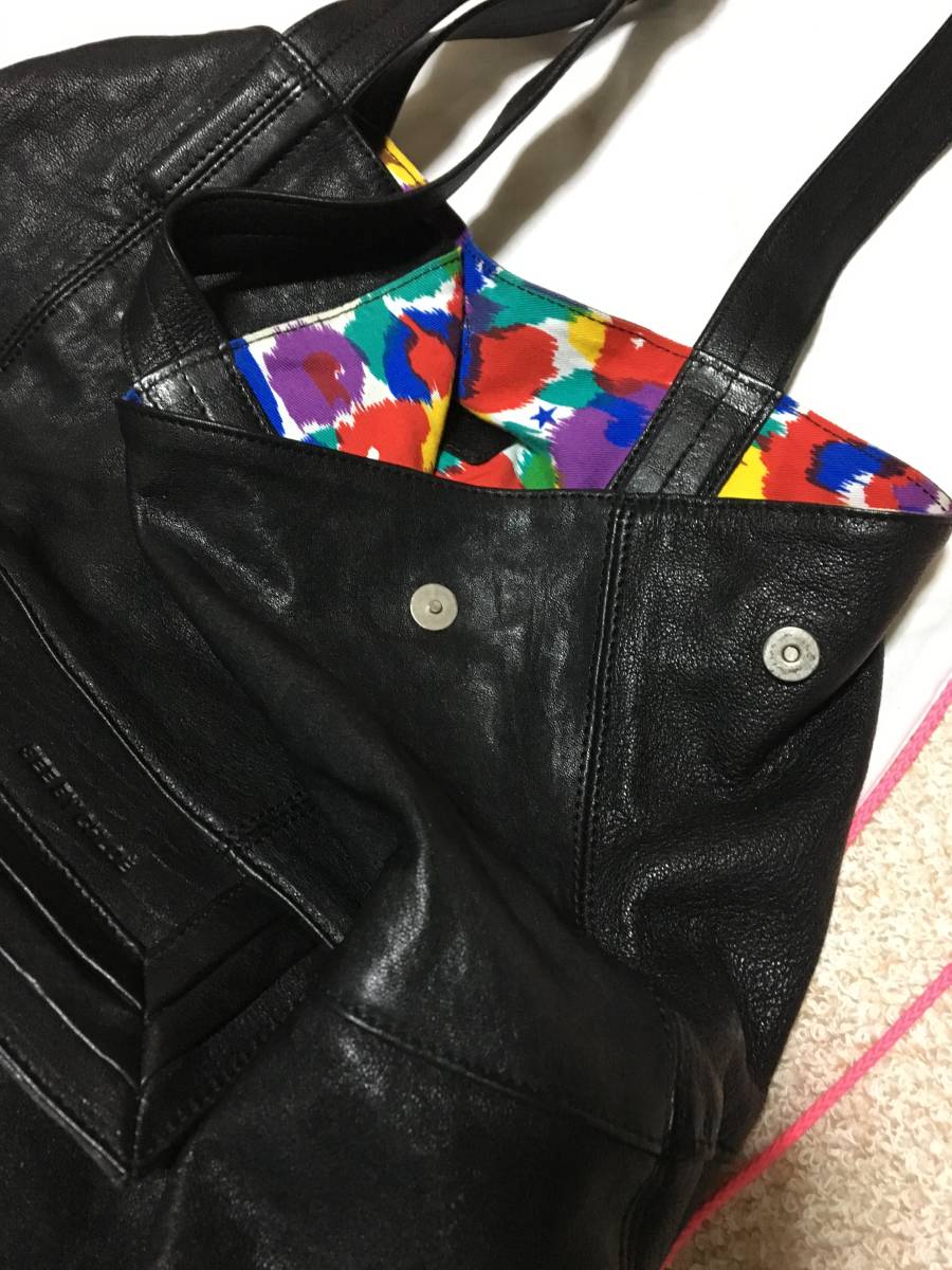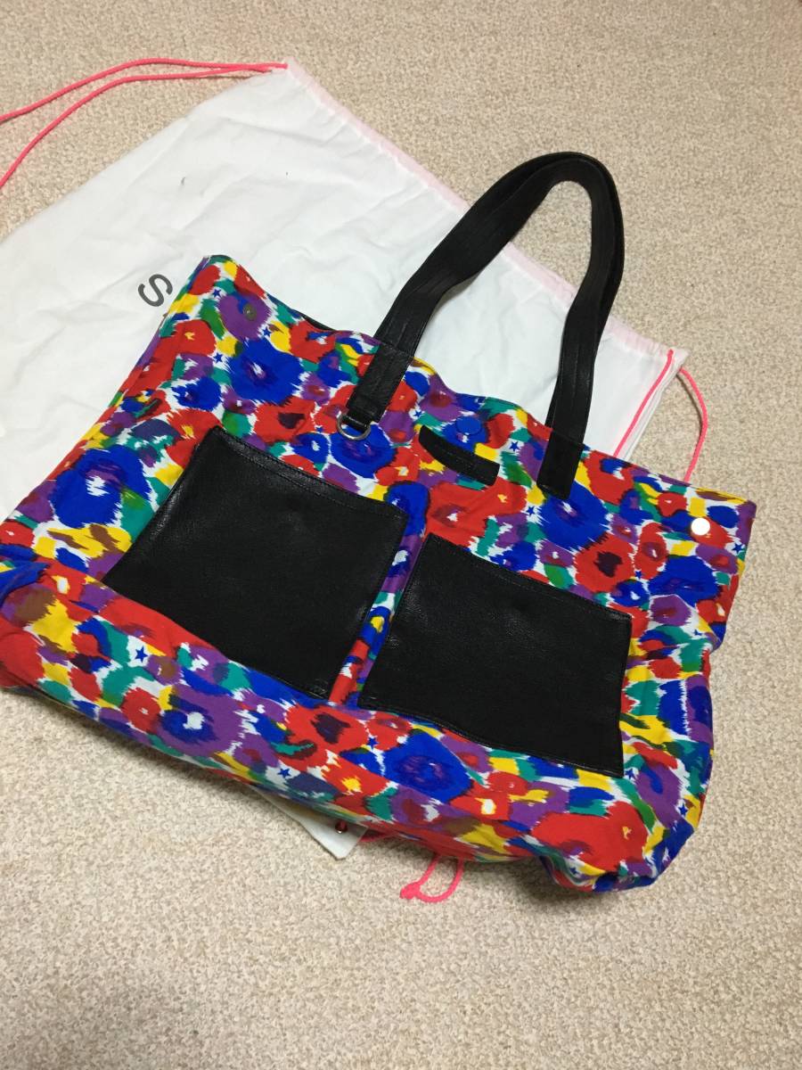 大きいので旅行バッグとしても使えるかと思います。リバーシブルで、裏側はコットン素材でリゾートにも向いてます。