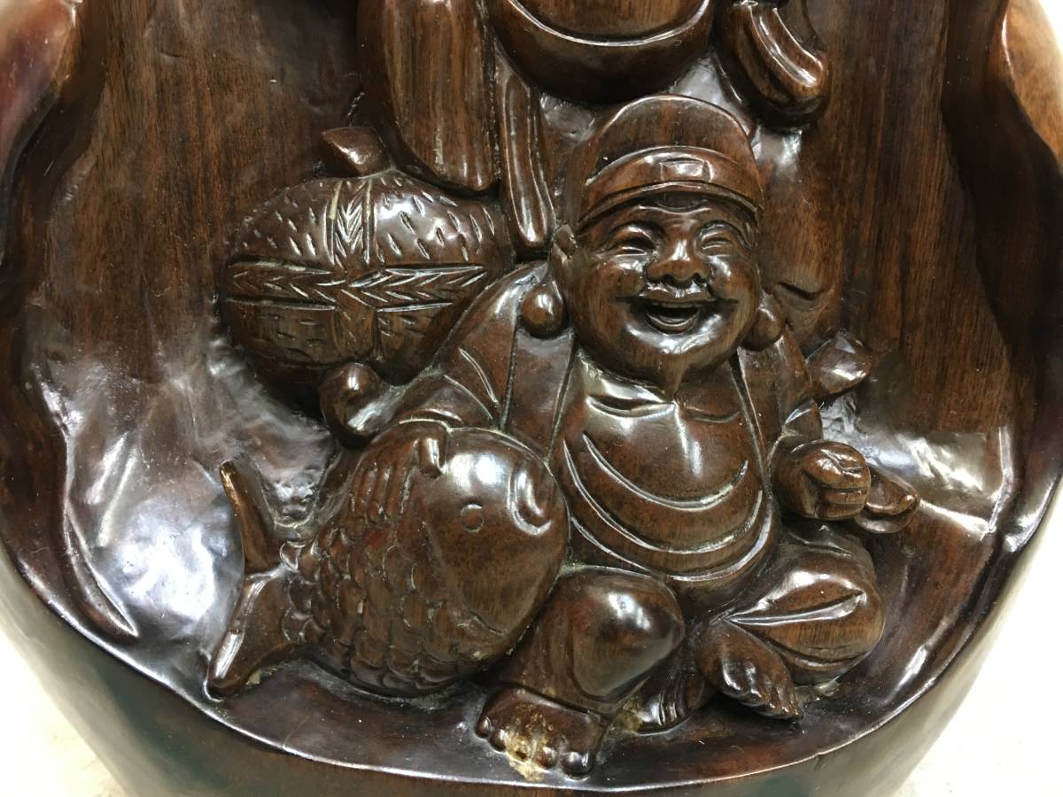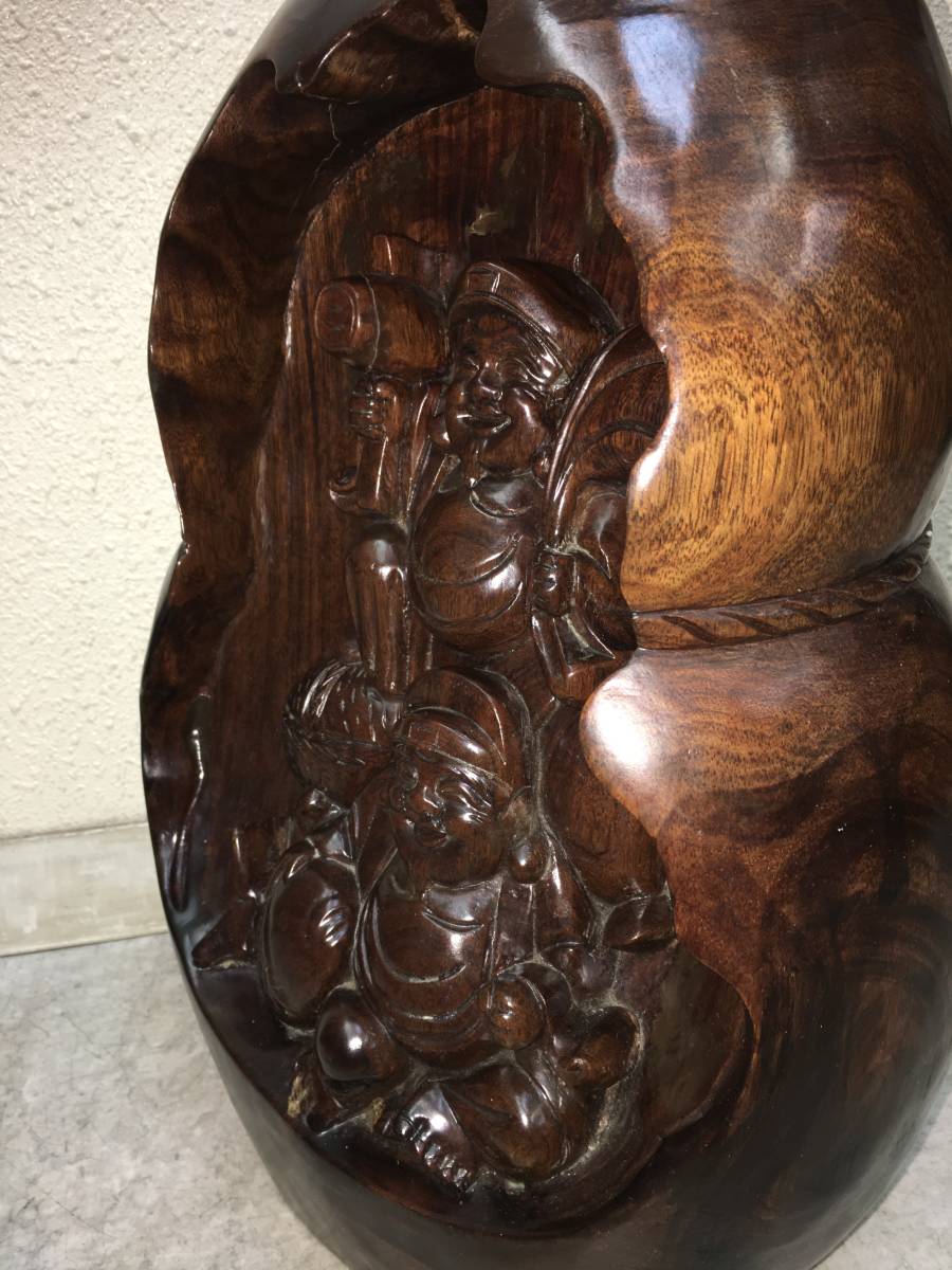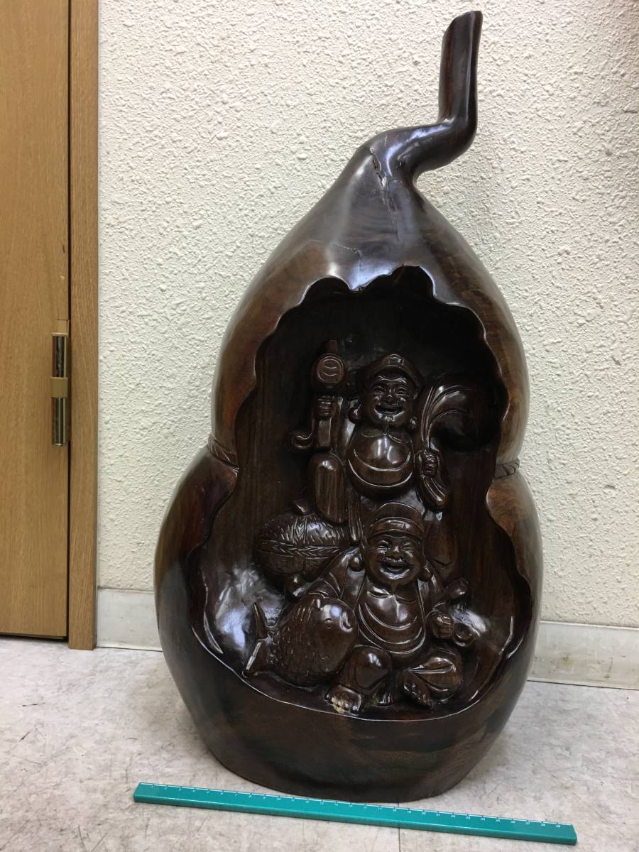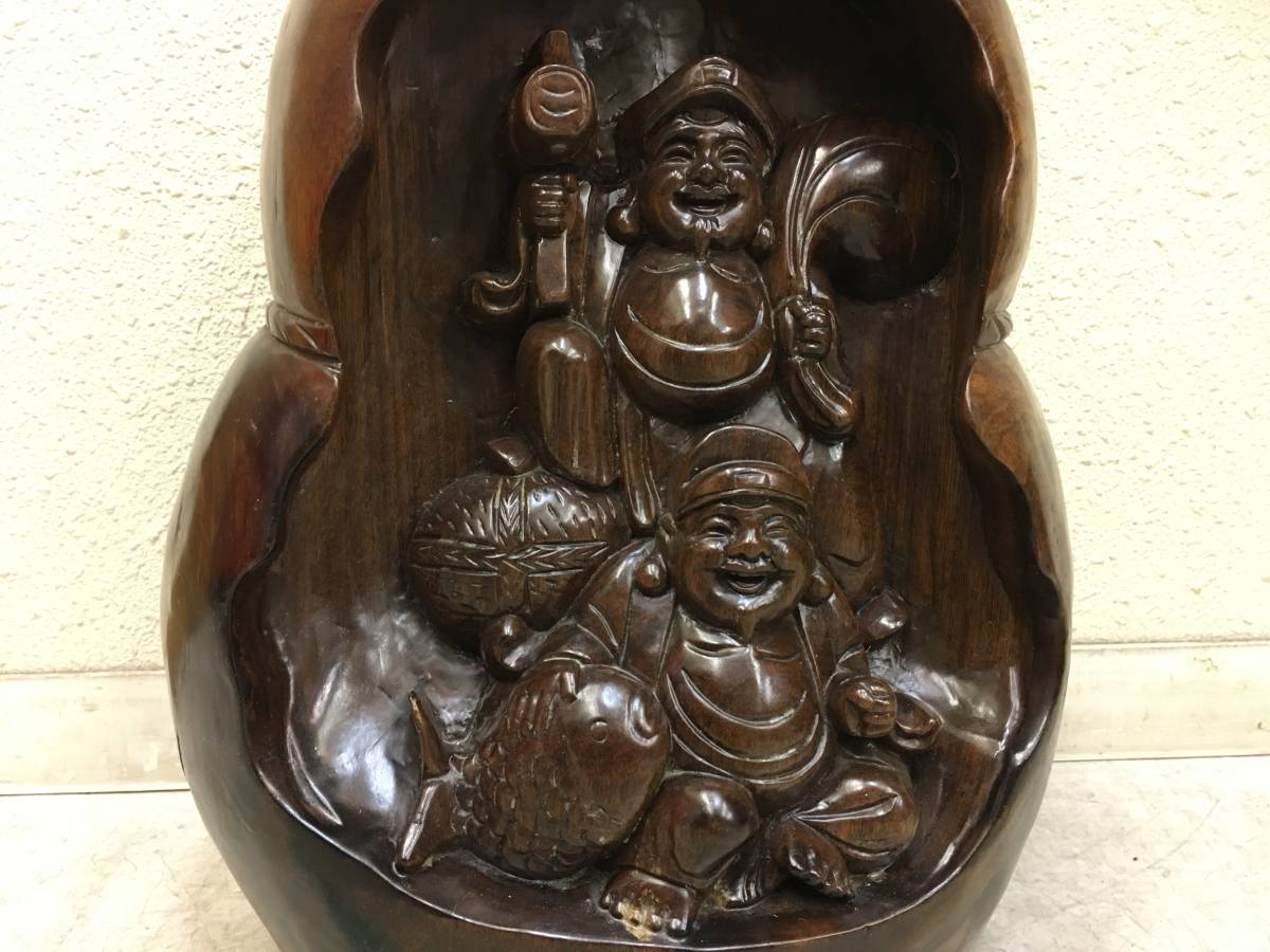 ★【逸品堂】★ 瓢箪 柄 黒檀 恵比須様 大黒様 木彫 彫刻 置物 木製 武財神 仏像 コクタン こくたん 無病息災 開運 商売繁盛 金運アップ