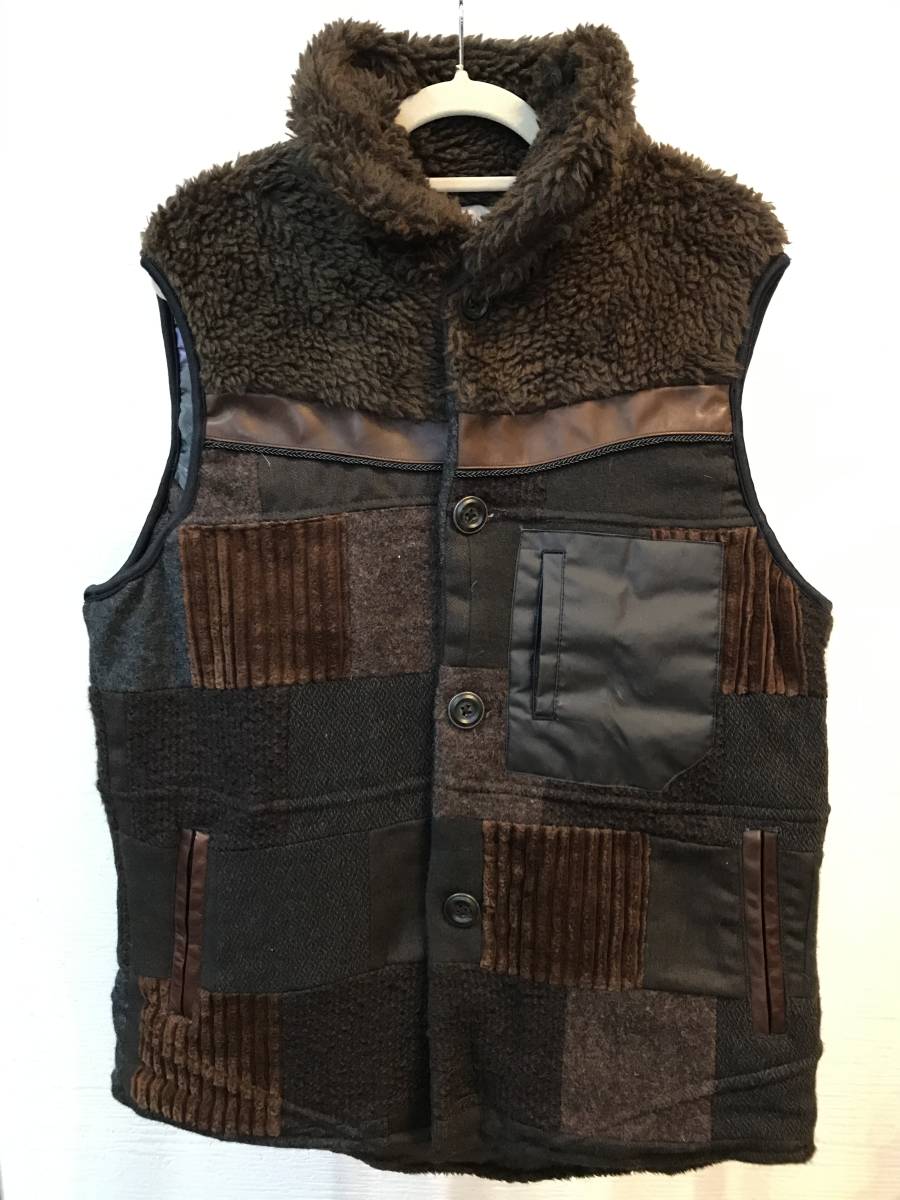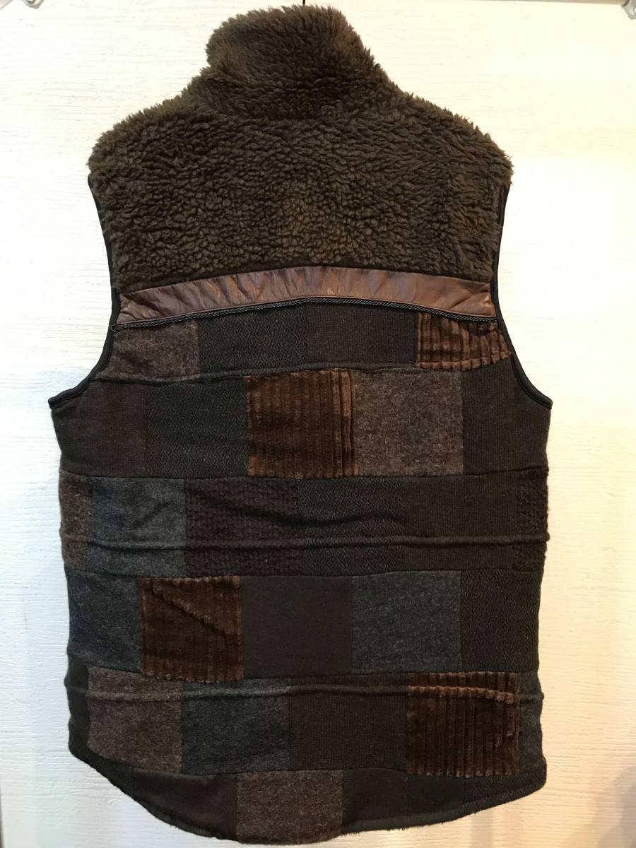 SLOW GUNのパッチワークボアベストです。試着のみです。素人採寸ですが 肩幅は39cmです。 身幅約48cm 総着丈が約73cm です。古着やビンテージを了承された方のみ入札をお願いします。 素人保管ですので新品、中古品等に神経質な方はご入札をお控え下さい。新規ID,マイナス評価の多い方は入札を取り消す場合がございますのでご容赦願います。落札後24時間以内のご連絡・48時間以内のご入金が出来る方のみ入札をお願いします。ノークレーム・ノーリターンでお願いします。