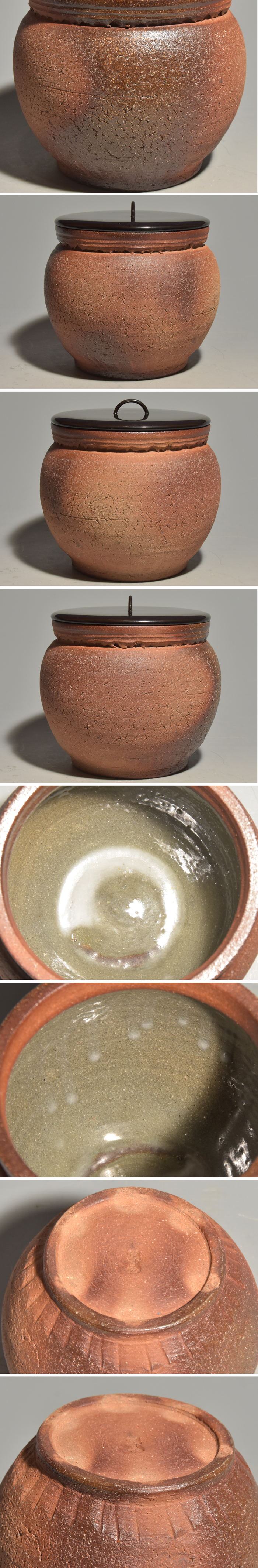 四代目 奥田忠左衛門(造)信楽焼水指です。 本品は信楽の味わい深い土に、釉薬が豪快にかけられており、土肌の景色が素晴らしい一品です。 高台底に銘「忠右衛門」あり。 状態もダメージはなくコンディションは良好です。 ※撮影の際に生じた写り込みなどがございます。 ご理解の程よろしくお願い致します。 |