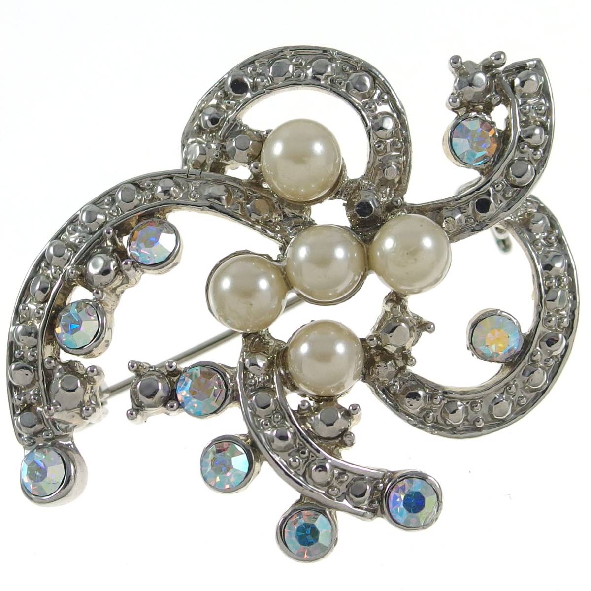 A1457◆ ヴィンテージブローチ ◆ fauxパール * オーロララインストーン ◆