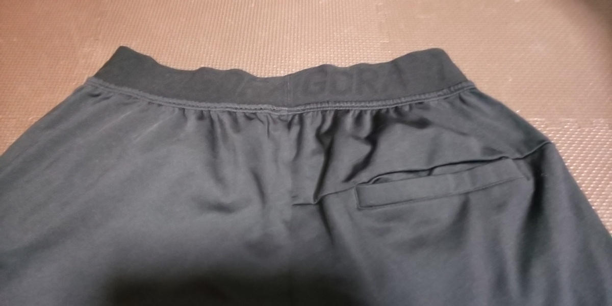 サイズ M 身幅53cm.着丈73cm.ウエスト35cm.最大52cm.平ゴム、ロゴ入り、股下70cm.裾ゴム入り