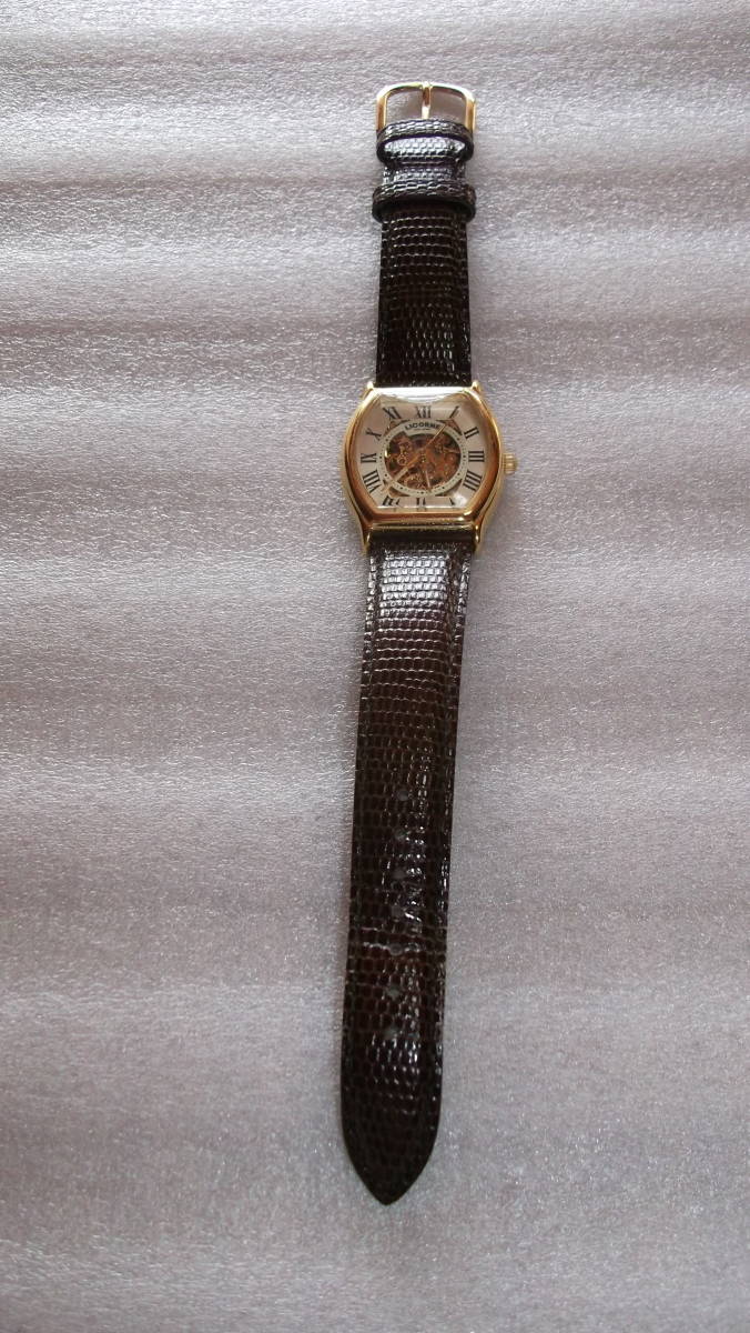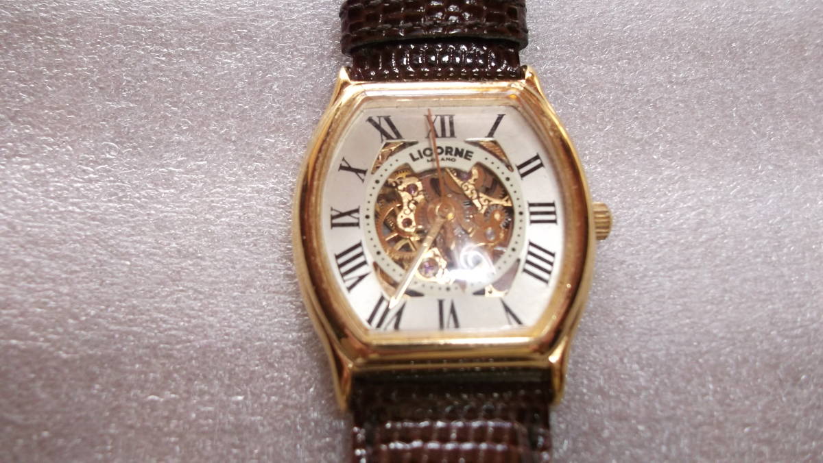 ご覧を頂き有り難うございます。LICORNEのメンズ腕時計です。MECHANICAL STAINLESS STEEL BACK NO.1903手巻3針ケース内部が見える本体幅30ミリ厚み9ミリベルト幅17ミリ