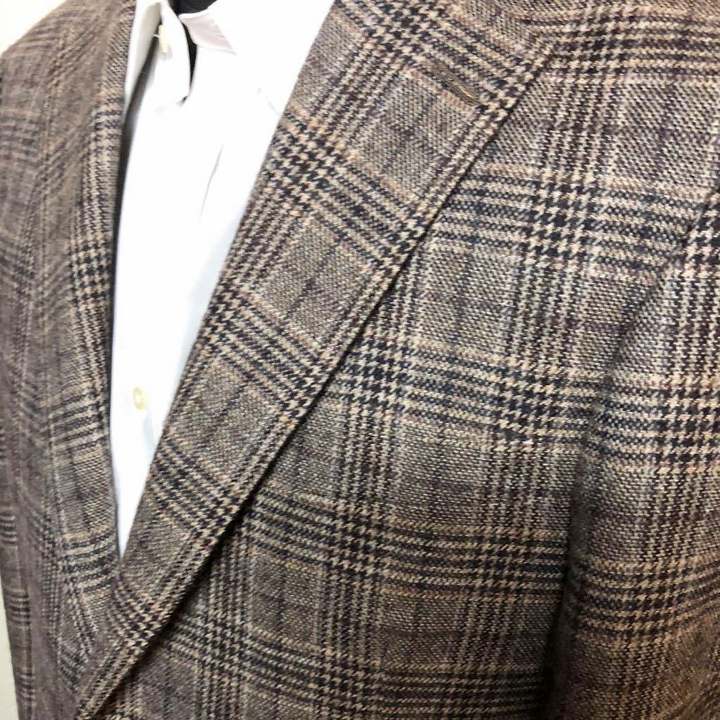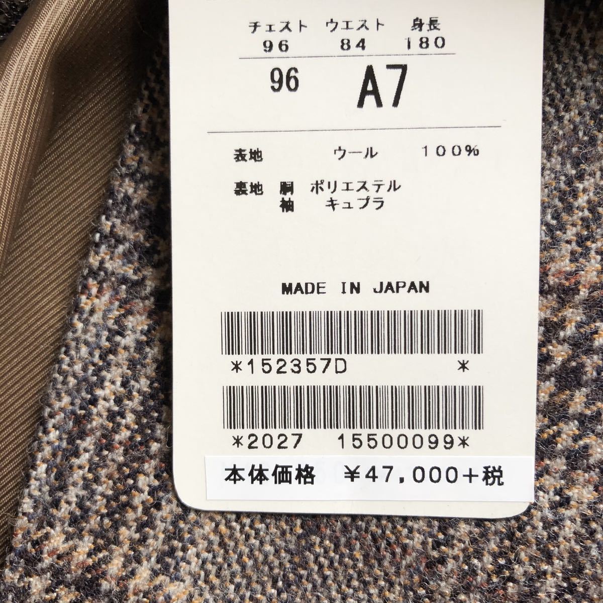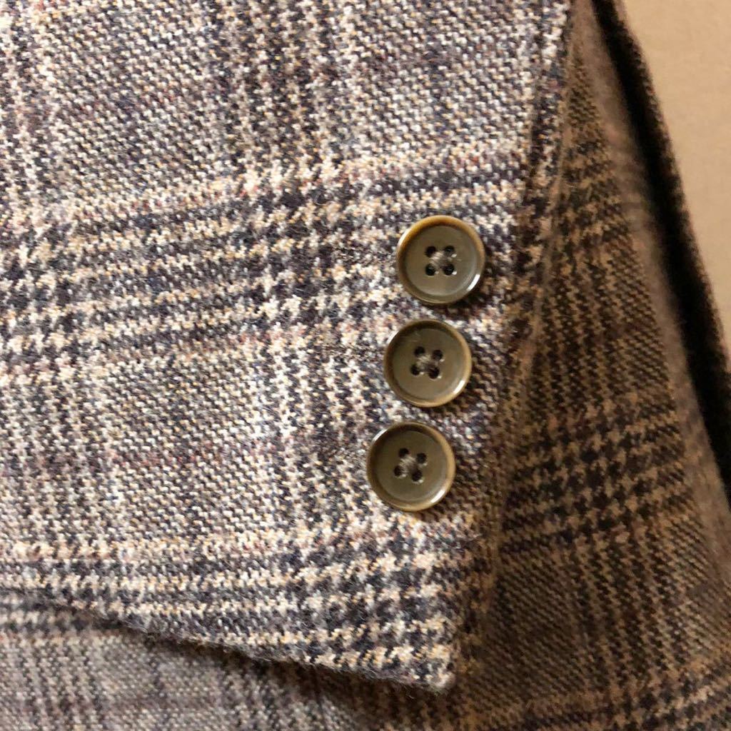 ・サイズ⇒A7 ・各寸法⇒着丈77cm、肩幅48cm、袖丈63cm、脇下身幅55cm ※素人採寸となります、多少の誤差はお許し下さい。 ・表地⇒ウール100% ・裏地(総裏)⇒ポリエステル 袖裏キュプラ ・色・柄⇒茶系・グレンチェック ・ステッチ⇒なし ・ベント⇒サイドベンツ ・袖ボタン⇒3個 ・台場⇒切台場 ・商品状態⇒新品(秋冬物) RD75325 | ||