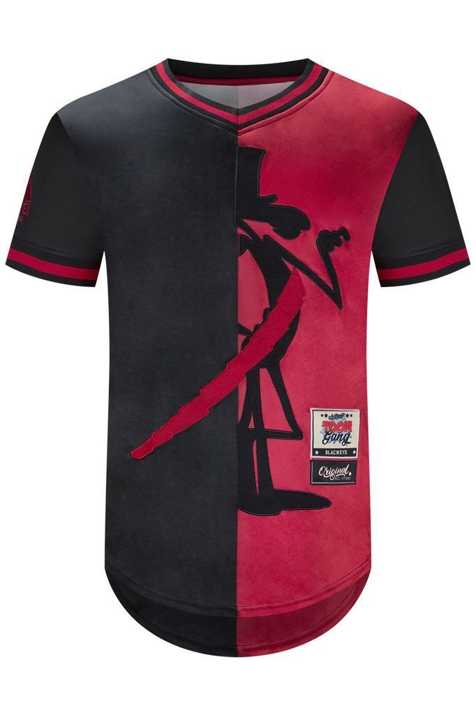 日本未発売 【M】 BlackKyes ブラックキーズ 野球 ベースボールシャツ Vネック ToonGang 赤 ピンクパンサー PinkPanther アメコミ USA