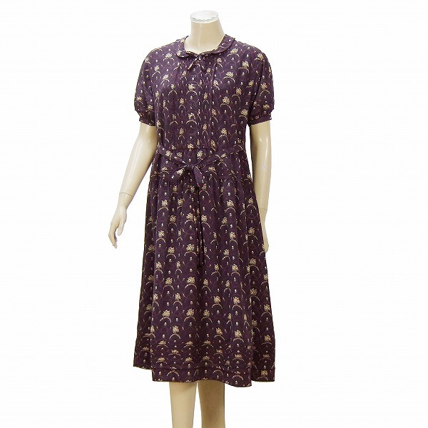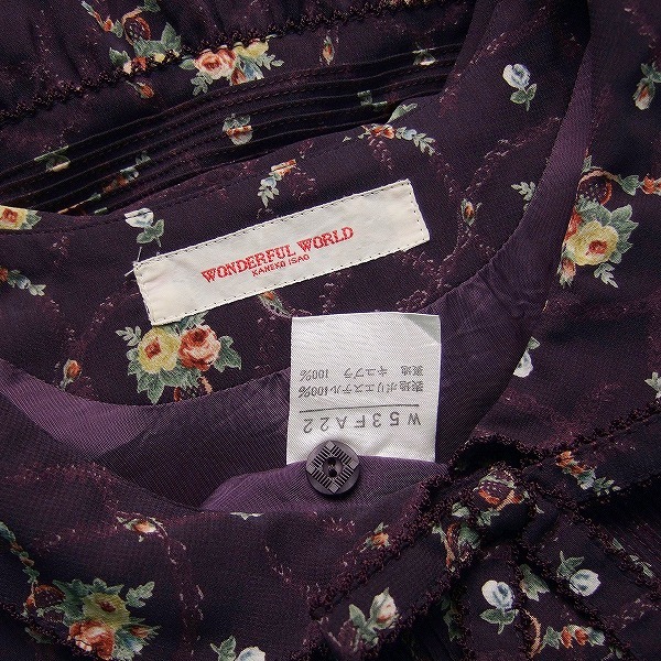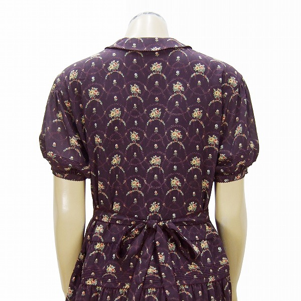 OP)新品同様*ワンダフルワールド カネコイサオ★薔薇柄×マルベリー系★ピコレース★綺麗パフスリーブワンピース★M~Lサイズ 11号 40位