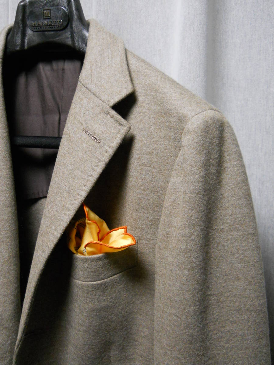 ブランドタグ、品質表示タグは取り外してしまいましたがイタリア製、シルク100%のチーフです。