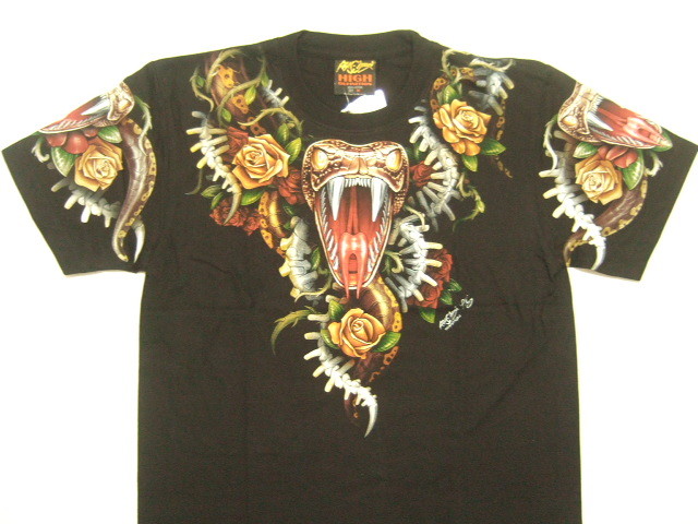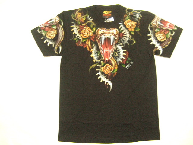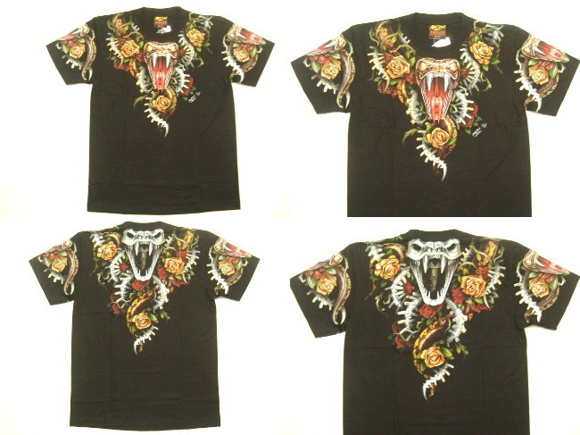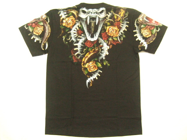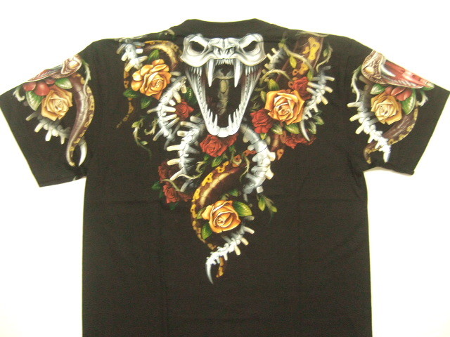 商品名 | 横浜最新 美しいコブラ ♪ バラ 魅惑の夜光Tシャツ 黒 サイズ M, L, XL |