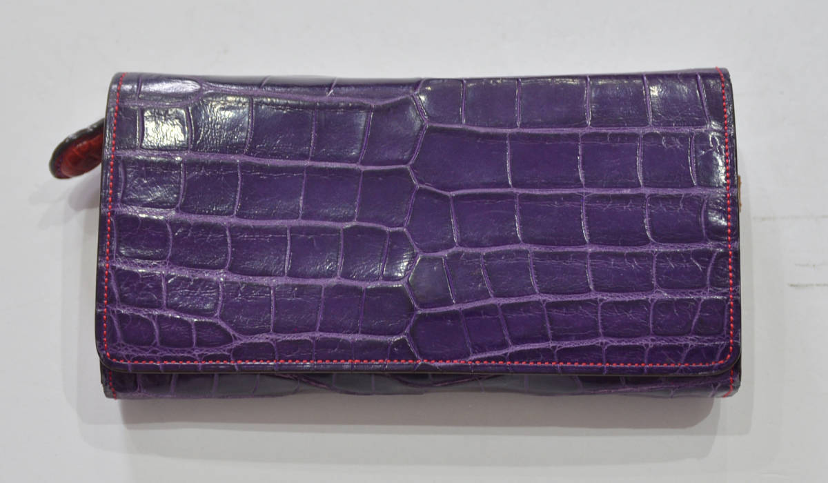 CIVINILE チビナイル クロコダイル レザー ウォレット 長財布 パープル Y-266256