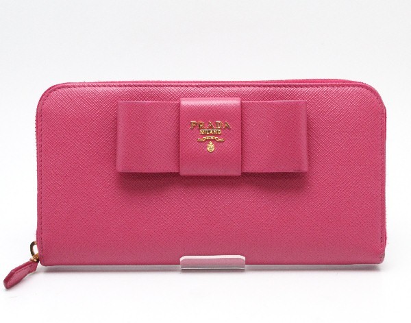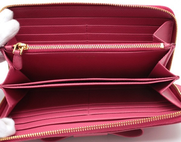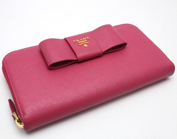 プラダ★PRADA★リボンモチーフ ラウンドジップ長財布 サフィアーノ ピンク★93455