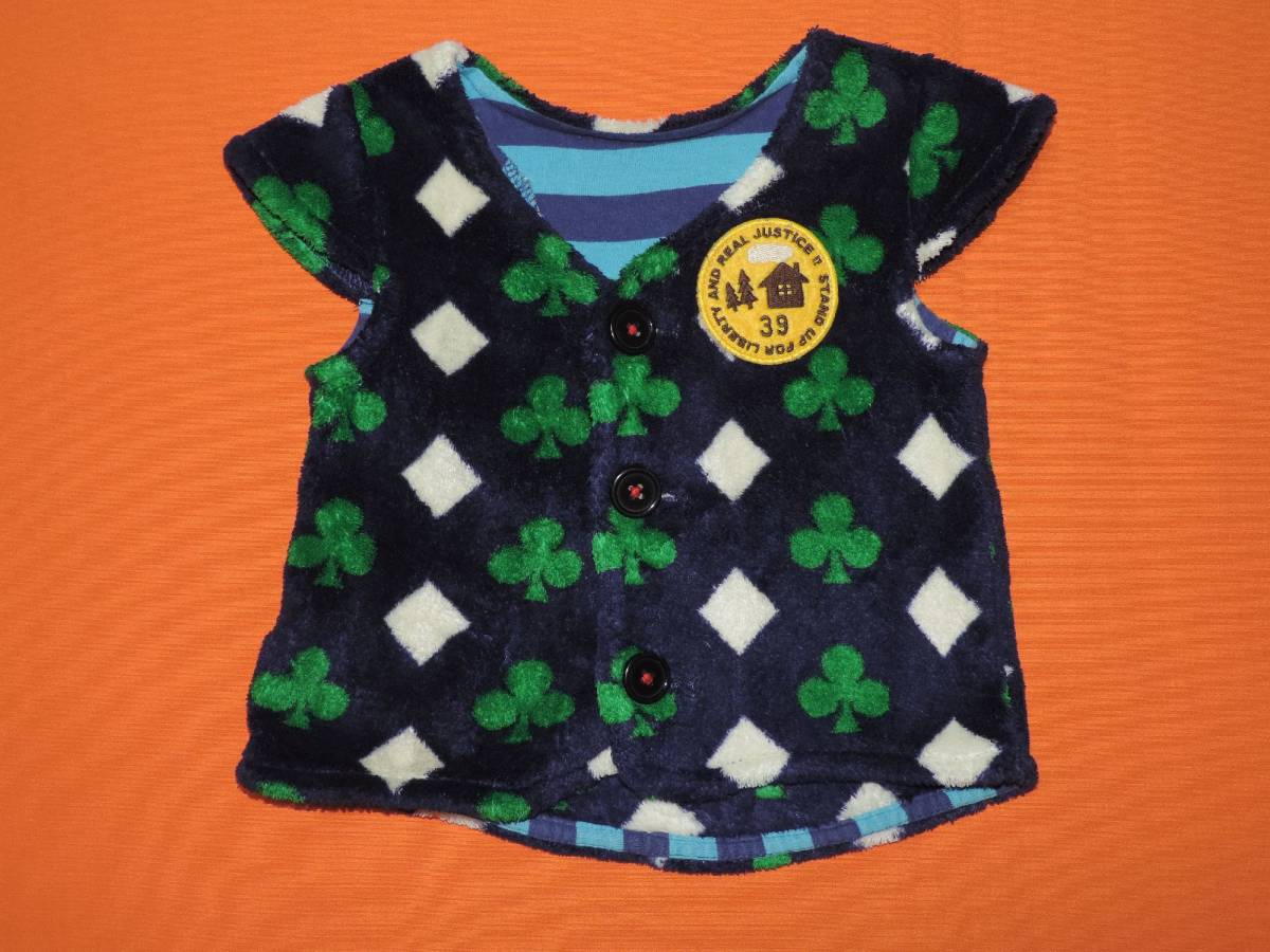 クローバーとダイヤプリントワッペン付きネイビーふわふわベスト☆80センチ