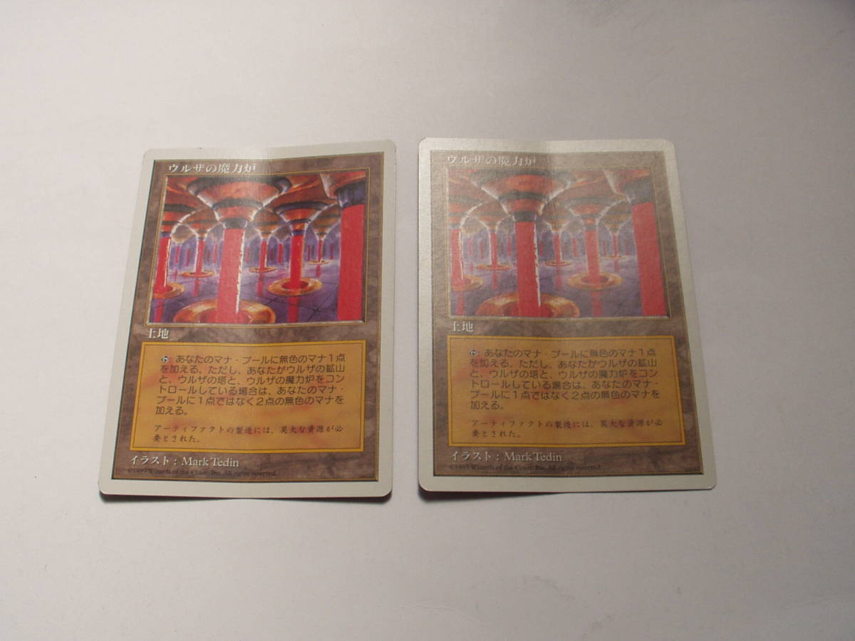 B知人の委託品です。 画像1~6枚目が全てです。 MTG ウルザの鉱山/ウルザの魔力炉/ウルザの塔 日本語各4枚 計12枚です。 何語だか分らない時があります。 エキスパンション、外国語(言葉)は画像で確認をお願いします。 カードはプレイしてます。 程度は画像1枚目の魔力炉2枚、真ん中から折れて丸まっています。 画像7枚目から10枚目が折れたカードです。 カードに目立つ擦り傷、傷、シワ、折れ目、ペン跡のようなキズ、汚れ、角や端に傷、白枠にキズ、などのキズが結構あります。 カードからタバコ、香水の匂いがします。 カードが丸まっていたり反ってたりしています。 気が付かない部分がありますので程度を気にする方は入札をご遠慮下さい。 程度は下、ボロ、魔力炉2枚はジャンクです。 コレクションには向きません。 何か起きた場合には自分では対応が出来ませんのでご理解頂ける方のみ入札をお願いします。 普通郵便で発送します。 郵便事故や郵便破損が起きた場合には保障できません。 ノ-クレーム、ノーリターンでお願いします。 ●クロネコメール便は2015/3/31で発送が出来なくなりました。ご了承下さい。
