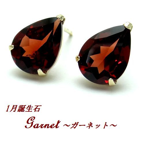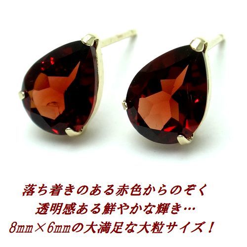 K10 ガーネット ペアシェイプ ピアス 大粒 8x6 ジュエリー WG YG 10金 ゴールド 1月誕生石 天然石 大きいサイズ 高品質 箱付き