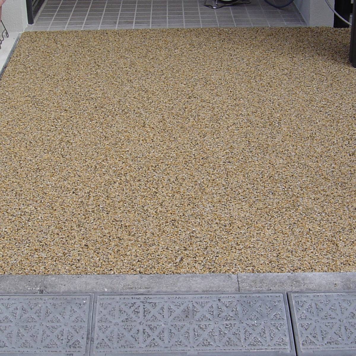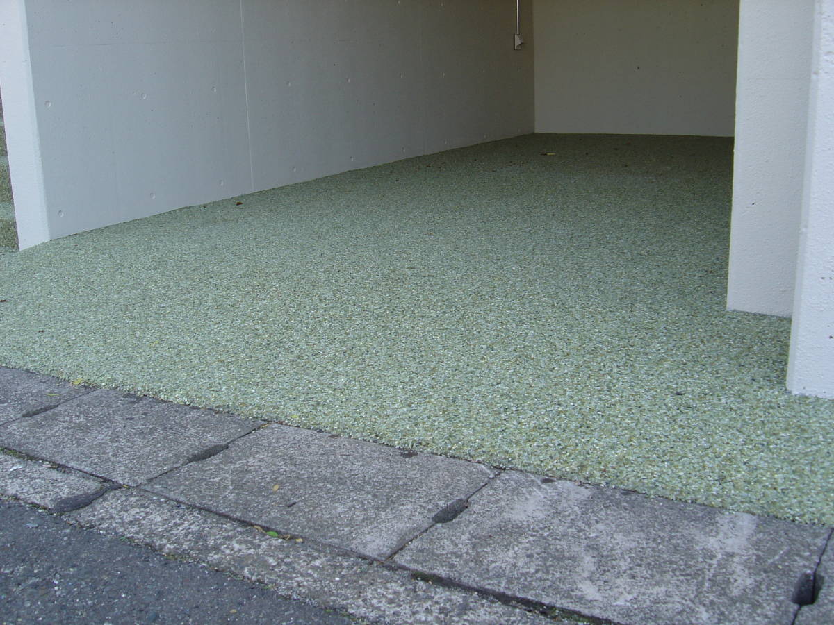 ※ 庭の雑草予防に、土の下地に砕石を50㎜厚程度で敷き固め、2~30㎜厚で、樹脂舗装します。