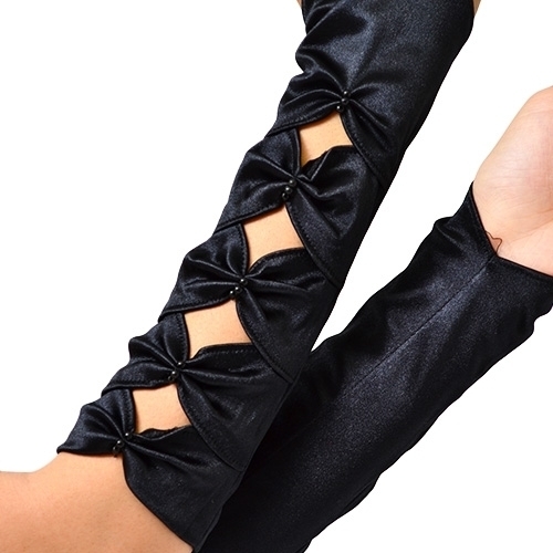 ネイルもバッチリ映える定番のビーズレース素材フィンガーレスロンググローブ