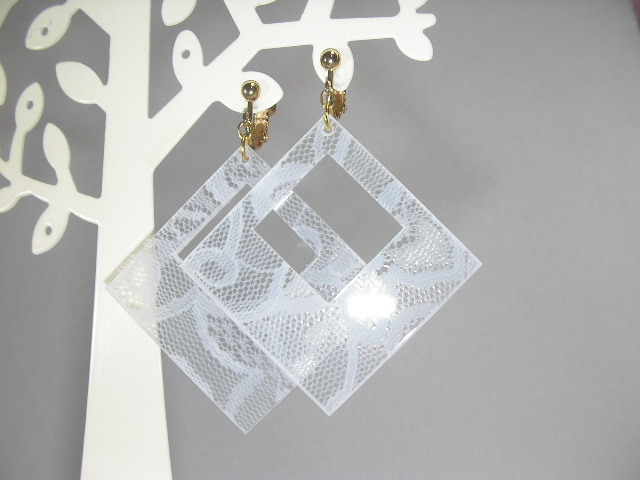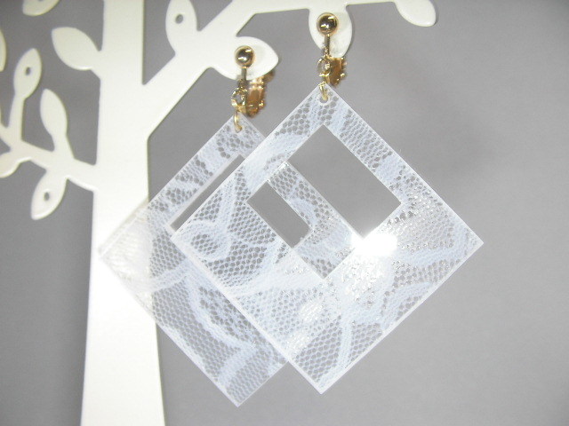 350♪おしゃれ&上品な かわいいイヤリング 検 白 レース柄 大人カジュアル