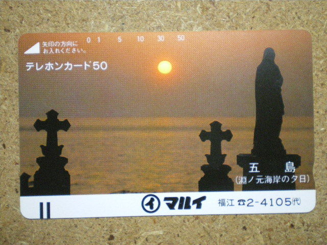 zou・330-2112 五島 淵ノ元海岸 夕日 像 テレカ