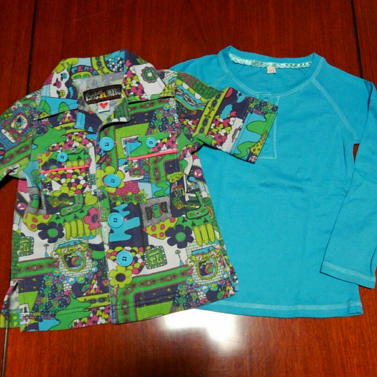 ブーフーウー ファーストベルボ FIRST BELBO 半袖シャツ 110㎝ 中古 総柄 水色ロンT付き 2枚セット