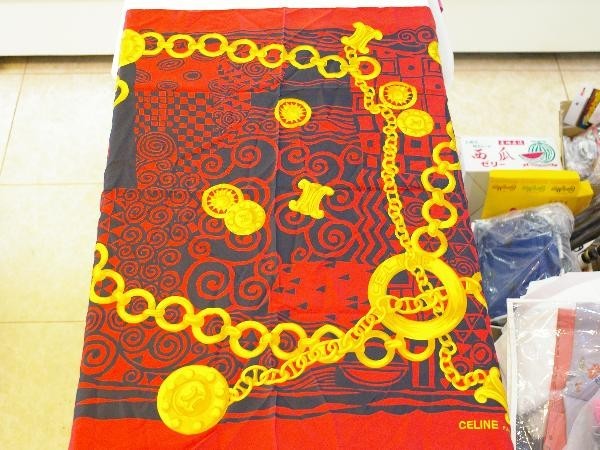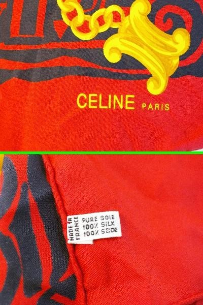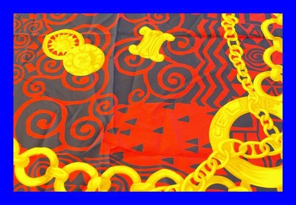 ■商品名○美品 セリーヌ CELINE 大判 シルク100% スカーフ ロゴ チェーン柄 | |||||||||||||