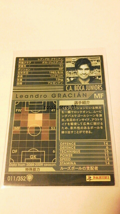 ☆WCCF2008-2009☆08-09☆011☆白☆レアンドロ・グラシアン☆ボカ・ジュニアーズ☆Leandro Gracian☆C.A. Boca Juniors☆