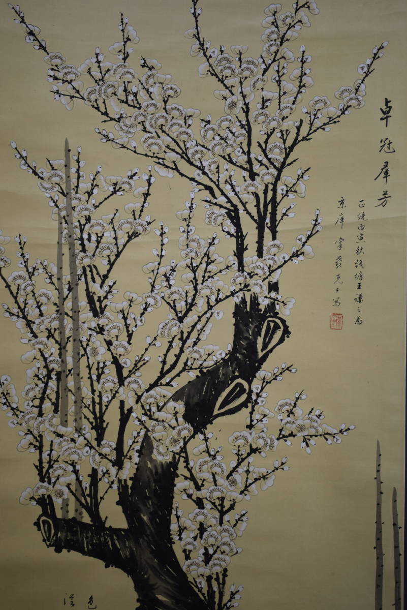| 【不詳】/作者不詳/白梅画賛/ ≪参考≫ 【不詳】/作者不詳/白梅画賛/ ≪作品状態≫ 本紙は絹本肉筆です。 本紙は多少の汚シミがあります。 表装は概ね良好です。 紙箱付 軸丈 縦 196㎝×幅 76㎝ 写真で状態をご判断の上、宜しくお願い致します。 |