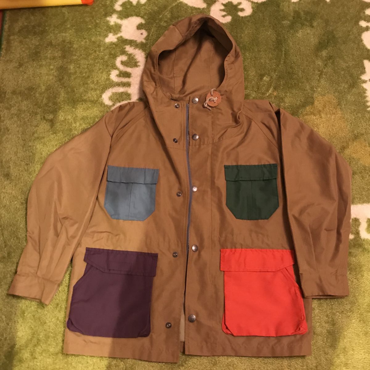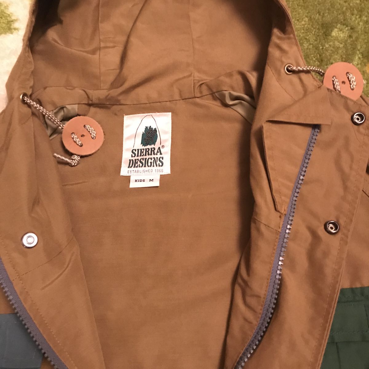 数回着用 ビームスボーイ別注 シェラデザインマウンテインジャケットです。キッズMサイズ、綿60、ナイロン40%です。実寸は、身幅50、着丈58、脇下袖丈43.5cmです。限定、完売モデルです。探していた方、この機会に如何ですか?