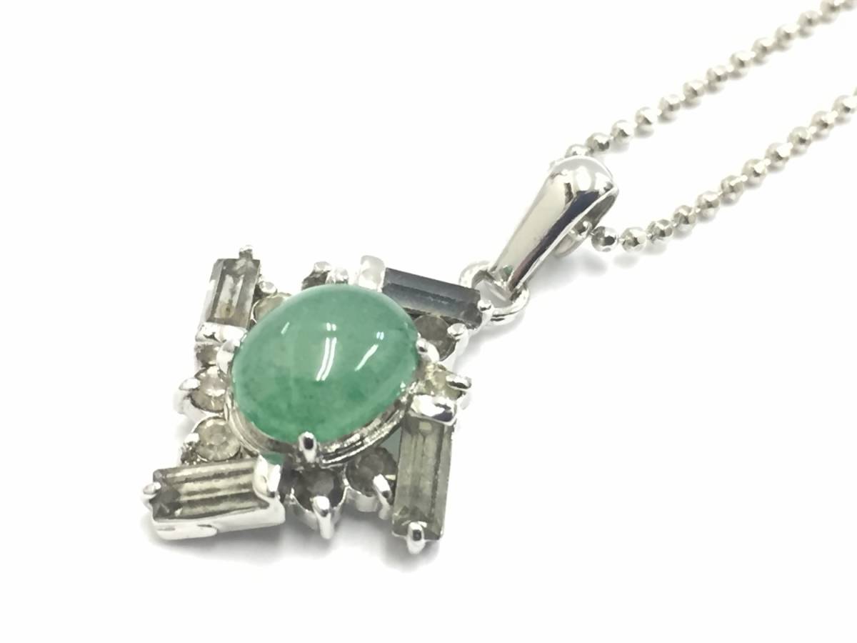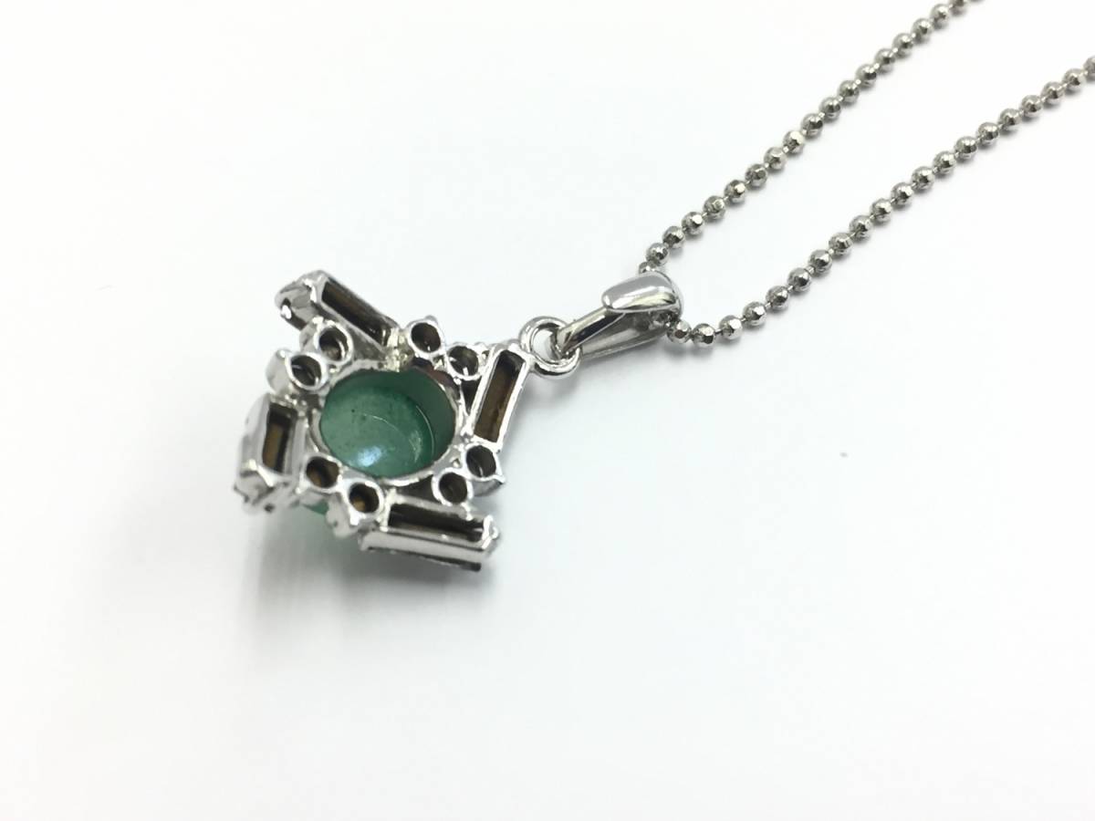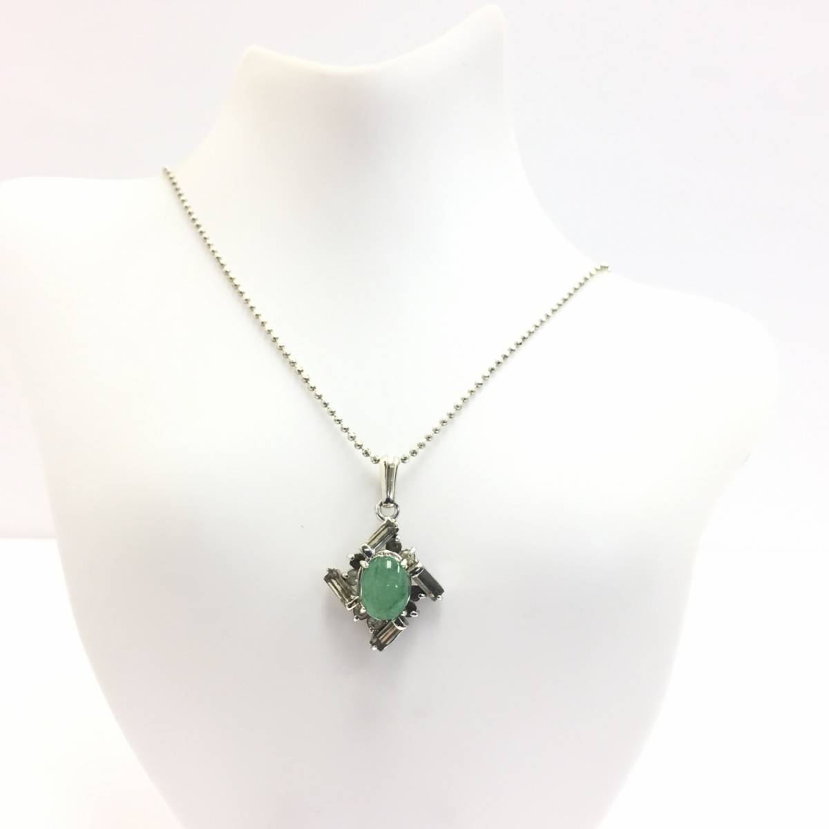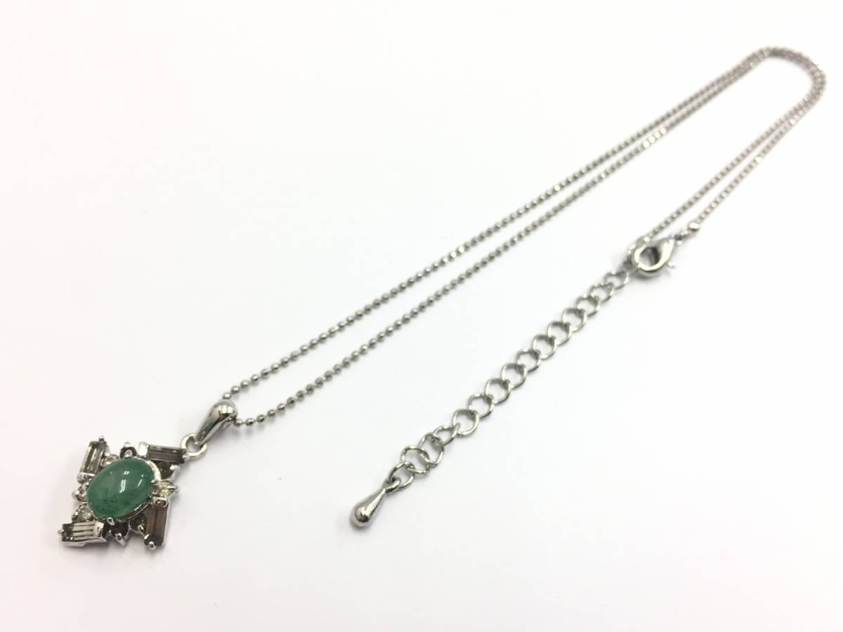 【ネックレス】約40+5cm アベンチュリンや翡翠(ひすい)のような色合い ペンダント ダイヤのような透明ストーン 上品