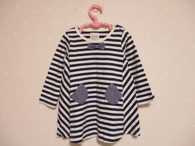 Ω BRANSHES Ω★90㎝★ 可愛いボーダー柄ワンピース ■紺■ | |||