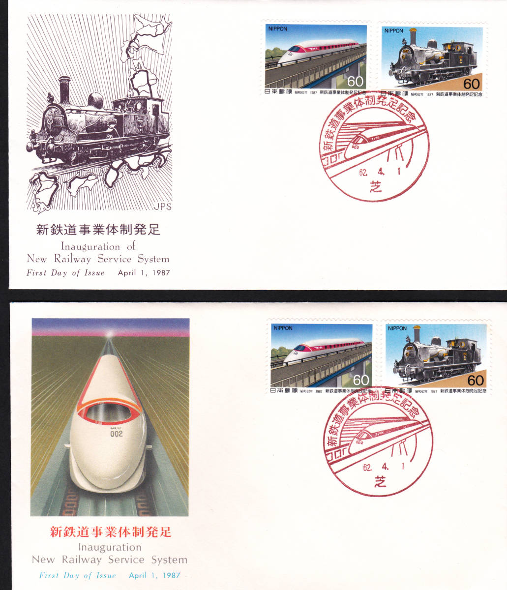 FDC 1987年 新鉄道事業体制発足記念 P貼A JPS-NCC