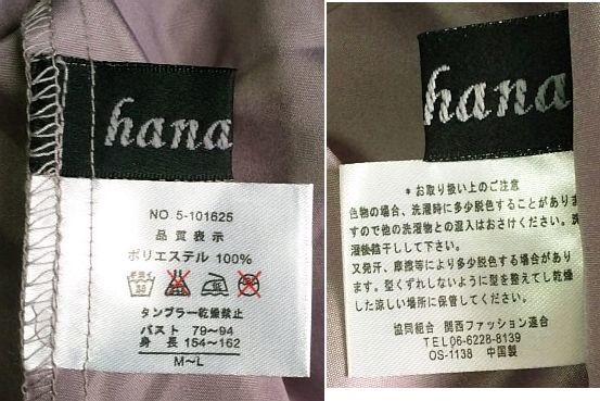 hanahanaのトップスです。サイズはM~L(T154-162、B79-94)です。